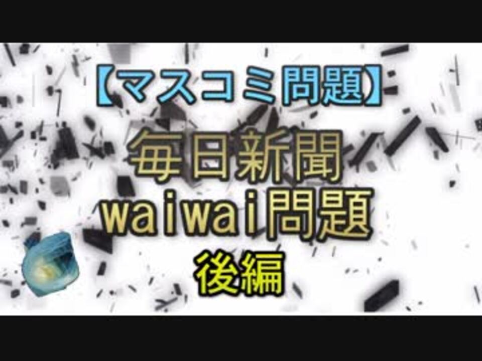 24日24時44分投稿、間に合ったな<br><br>本日も毎日新聞の信用が落ちるところまで落ちる原因となった、毎日新聞waiwai問題について解説する動画の後編となります。<br><br>元記事<br>2008年、マスコミ不信問題に大きな影響を与えた毎日新聞waiwai問題 (前編)<br><a href="http://ooguchib.blog.fc2.com/blog-entry-43.html" target="_blank" rel="noopener nofollow">http://ooguchib.blog.fc2.com/blog-entry-43.html</a><br>2008年、マスコミ不信問題に大きな影響を与えた毎日新聞waiwai問題 (後編)<br><a href="http://ooguchib.blog.fc2.com/blog-entry-44.html" target="_blank" rel="noopener nofollow">http://ooguchib.blog.fc2.com/blog-entry-44.html</a><br><br>以下のまとめwikiを参照させていただきました。<br><br>毎日新聞の英語版サイトがひどすぎる まとめ@wiki<br><a href="https://www9.atwiki.jp/mainichiwaiwai/" target="_blank" rel="noopener nofollow">https://www9.atwiki.jp/mainichiwaiwai/</a><br>毎日新聞問題の情報集積wiki<br><a href="https://www8.atwiki.jp/mainichi-matome/" target="_blank" rel="noopener nofollow">https://www8.atwiki.jp/mainichi-matome/</a><br><br>関連動画<br>【マスコミ問題】毎日新聞転落の始まりと最近の大量BAN問題<br><a href="https://www.nicovideo.jp/watch/sm33341349" class="watch">sm33341349</a><br>【マスコミ問題】マスコミ不信の第二次転換期<br><a href="https://www.nicovideo.jp/watch/sm33939366" class="watch">sm33939366</a><br><br>引用ソースと動画のテキストをブロマガ日韓問題(初心者向け)のほうへ掲載しています。<br><br>日韓問題(初心者向け)<br><a href="https://ch.nicovideo.jp/ooguchib" target="_blank" rel="noopener">ch.nicovideo.jp/ooguchib</a><br><br>暇つぶしにどうぞ<br><a href="http://ooguchib.blog.fc2.com/" target="_blank" rel="noopener nofollow">http://ooguchib.blog.fc2.com/</a> <br><br>twitter @ooguchib<br><a href="https://twitter.com/ooguchib" target="_blank" rel="noopener nofollow">https://twitter.com/ooguchib</a><br><br>今回のブロマガ記事<br><a href="https://ch.nicovideo.jp/article/ar1701643" target="_blank" rel="noopener">ar1701643</a><br><br>前 <a href="https://www.nicovideo.jp/watch/sm34188446" class="watch">sm34188446</a> <a href="https://www.nicovideo.jp/mylist/59069876" target="_blank" rel="noopener">mylist/59069876</a> 次回 <a href="https://www.nicovideo.jp/watch/sm34256754" class="watch">sm34256754</a><br>前編<br><a href="https://www.nicovideo.jp/watch/sm34084878" class="watch">sm34084878</a><br><br>番外編マイリスト<br><a href="https://www.nicovideo.jp/mylist/62992608" target="_blank" rel="noopener">mylist/62992608</a><br><br>youtube版<br><a href="https://youtu.be/HhuJ_VBiLjs" target="_blank" rel="noopener nofollow">https://youtu.be/HhuJ_VBiLjs</a><br>