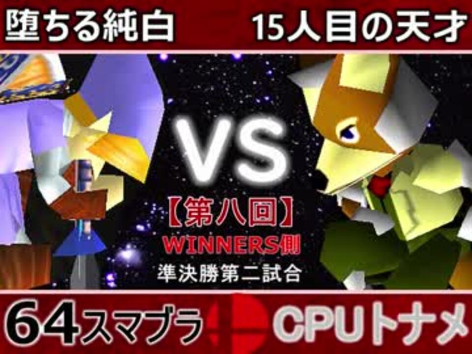 勝ったほうがWINNERS決勝!<br>どちらが勝つかアンケ結果(Twitter調べ) <br>堕ちる純白(LI) 21% VS 15人目の天才(FO) 79%<br><br><font color="#0000ff"><u>※64スマブラCPUトナメ実況のwikiができた模様</u>→</font> <a href="https://wiki3.jp/cpu_64" target="_blank" rel="noopener nofollow">https://wiki3.jp/cpu_64</a><br><br><b><font color="#ff0000">決勝トナメのPVを作成していただきました</font></b>【<a href="https://www.nicovideo.jp/watch/sm33974576" class="watch">sm33974576</a>】ありがとうございます!!!<br><b><font size="5"><font color="#ff0000">次→</font></font></b>【<a href="https://www.nicovideo.jp/watch/sm34270280" class="watch">sm34270280</a>】※毎日投稿 <br><br>前【<a href="https://www.nicovideo.jp/watch/sm34260848" class="watch">sm34260848</a>】 Winners側一回戦第一試合【<a href="https://www.nicovideo.jp/watch/sm34042071" class="watch">sm34042071</a>】 <br>予選Aブロック第一試合【<a href="https://www.nicovideo.jp/watch/sm33462799" class="watch">sm33462799</a>】 <br>出場選手紹介【<a href="https://www.nicovideo.jp/watch/sm33435891" class="watch">sm33435891</a>】<br> <br>第八回マイリスト【<a href="https://www.nicovideo.jp/mylist/62486112" target="_blank" rel="noopener">mylist/62486112</a>】 <br>64スマブラCPUトナメ実況part1まとめ【<a href="https://www.nicovideo.jp/mylist/60846861" target="_blank" rel="noopener">mylist/60846861</a>】<br>その他シリーズ【<a href="https://www.nicovideo.jp/mylist/12965027" target="_blank" rel="noopener">mylist/12965027</a>】<br><br><b><font color="#00bfff">Twitter</font></b>【<a href="https://twitter.com/niconicopppppp" target="_blank" rel="noopener nofollow">https://twitter.com/niconicopppppp</a> 】<br><b><font color="#ff4500">チャンネル</font></b>【<a href="https://ch.nicovideo.jp/p-desu" target="_blank" rel="noopener">ch.nicovideo.jp/p-desu</a>】