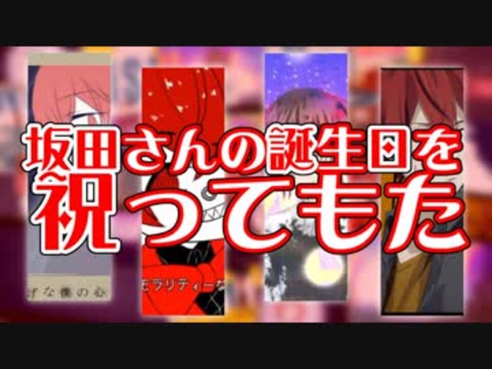坂田さんお誕生日おめでとうございます!<br><br>※注意※<br>・描いてみた動画等が苦手な方は視聴をお控えください。<br>・誹謗中傷等のコメントはお控えください。<br><br>企画者:ハルムラ <a href="https://twitter.com/harumurrr_" target="_blank" rel="noopener nofollow">https://twitter.com/harumurrr_</a><br>動画:ゆるねこ <a href="https://twitter.com/yuruneko_cat" target="_blank" rel="noopener nofollow">https://twitter.com/yuruneko_cat</a><br>絵:ハルムラ<br> 甘空ソルト <a href="https://twitter.com/Amazoradao" target="_blank" rel="noopener nofollow">https://twitter.com/Amazoradao</a><br> りもこ <a href="https://twitter.com/rimokosama" target="_blank" rel="noopener nofollow">https://twitter.com/rimokosama</a><br> 西木野悠 <a href="https://twitter.com/nikuman_haruka" target="_blank" rel="noopener nofollow">https://twitter.com/nikuman_haruka</a><br>歌:藍 <a href="https://twitter.com/aisan__14" target="_blank" rel="noopener nofollow">https://twitter.com/aisan__14</a><br> こう狐 <a href="https://twitter.com/ko_gitsune" target="_blank" rel="noopener nofollow">https://twitter.com/ko_gitsune</a><br>感情泥棒:本家様…<a href="https://nico.ms/sm25182507" target="_blank" rel="noopener nofollow">https://nico.ms/sm25182507</a><br> 坂田Ver.…<a href="https://nico.ms/1419601771" target="_blank" rel="noopener nofollow">https://nico.ms/1419601771</a><br> 絵...西木野悠<br> 歌…こう狐<br>SNOBBISM:本家様…<a href="https://nico.ms/sm32921516" target="_blank" rel="noopener nofollow">https://nico.ms/sm32921516</a><br> 坂田Ver.…<a href="https://nico.ms/1523611802" target="_blank" rel="noopener nofollow">https://nico.ms/1523611802</a><br> 絵…甘空ソルト<br> 歌…藍<br>イデア:本家様…<a href="https://nico.ms/sm33191413" target="_blank" rel="noopener nofollow">https://nico.ms/sm33191413</a><br> 坂田Ver.…<a href="https://nico.ms/1532170824" target="_blank" rel="noopener nofollow">https://nico.ms/1532170824</a><br> 絵…りもこ <br> 歌…こう狐<br>エンドロール:本家様…<a href="https://nico.ms/sm33550626" target="_blank" rel="noopener nofollow">https://nico.ms/sm33550626</a><br> 坂田Ver.…<a href="https://nico.ms/1536919234" target="_blank" rel="noopener nofollow">https://nico.ms/1536919234</a><br> 絵…ハルムラ<br> 歌…藍