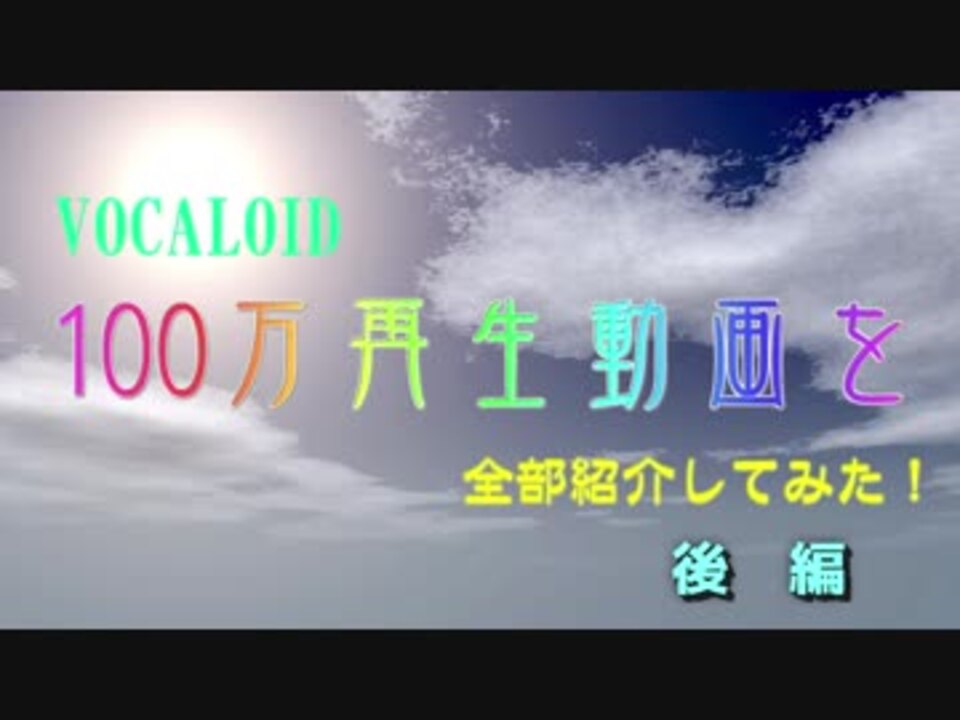 VOCALOID100万再生動画を全部紹介してみた!後編(2012年-2018年投稿分)【2018/12/1現在】