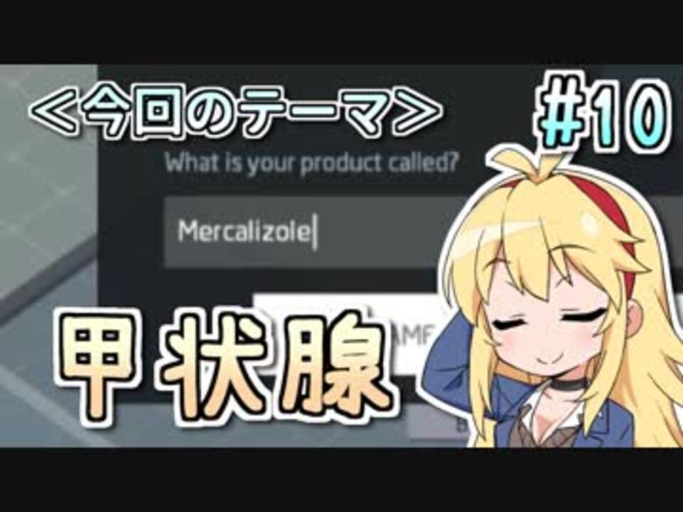 <font color="#262626">薬の製造ラインを組み立てて製薬工場を経営する、「Big Pharma」というゲームを遊びながら、ゲームに登場した薬学用語について解説する、ゲーム実況と薬学解説を融合させた実験的企画です。 <br><br></font>免疫チェックポイント阻害薬(オプジーボなど)の解説(他製作者様)→<a href="https://www.nicovideo.jp/watch/sm33965038" class="watch">sm33965038</a><br><br>今回はゲーム中心です。<br>そういえば、part11でゲーム内容的に一区切りつくので、part12からリニューアルしようかなと思っています。<br><br><font color="#ff0000" size="3">薬学専用のTwitterアカウントを作りました!→<a href="https://twitter.com/iwashi_pharm" target="_blank" rel="noopener nofollow">https://twitter.com/iwashi_pharm</a></font><br>趣味・動画用アカはこちら→<a href="https://twitter.com/Iwashi_bibili" target="_blank" rel="noopener nofollow">https://twitter.com/Iwashi_bibili</a><br><br> 前回:<a href="https://www.nicovideo.jp/watch/sm34287368" class="watch">sm34287368</a>/ マイリスト(薬学解説総まとめ):<a href="https://www.nicovideo.jp/mylist/60951253" target="_blank" rel="noopener">mylist/60951253</a>/ 次回:<a href="https://www.nicovideo.jp/watch/sm34326576" class="watch">sm34326576</a><br><br>Youtube: <a href="https://www.youtube.com/channel/UCcLWyYVS3ysazvYjN7pKXuw" target="_blank" rel="noopener nofollow">https://www.youtube.com/channel/UCcLWyYVS3ysazvYjN7pKXuw</a> <br><br> ================薬剤師マキの挑む製薬工場開発==================<br>あかり立ち絵:こんにゃく 様(<a href="https://seiga.nicovideo.jp/seiga/im8106524" target="_blank" rel="noopener">im8106524</a>) <br>マキ立ち絵:たしかなまんぞく 様(<a href="https://seiga.nicovideo.jp/seiga/im8026963" target="_blank" rel="noopener">im8026963</a>)<br> きりたん立ち絵:ふらすこ 様(<a href="https://seiga.nicovideo.jp/seiga/im6447064" target="_blank" rel="noopener">im6447064</a>)<br>ゲーム: Big Pharma(Steam <a href="http://store.steampowered.com/app/344850)" target="_blank" rel="noopener nofollow">http://store.steampowered.com/app/344850)</a>