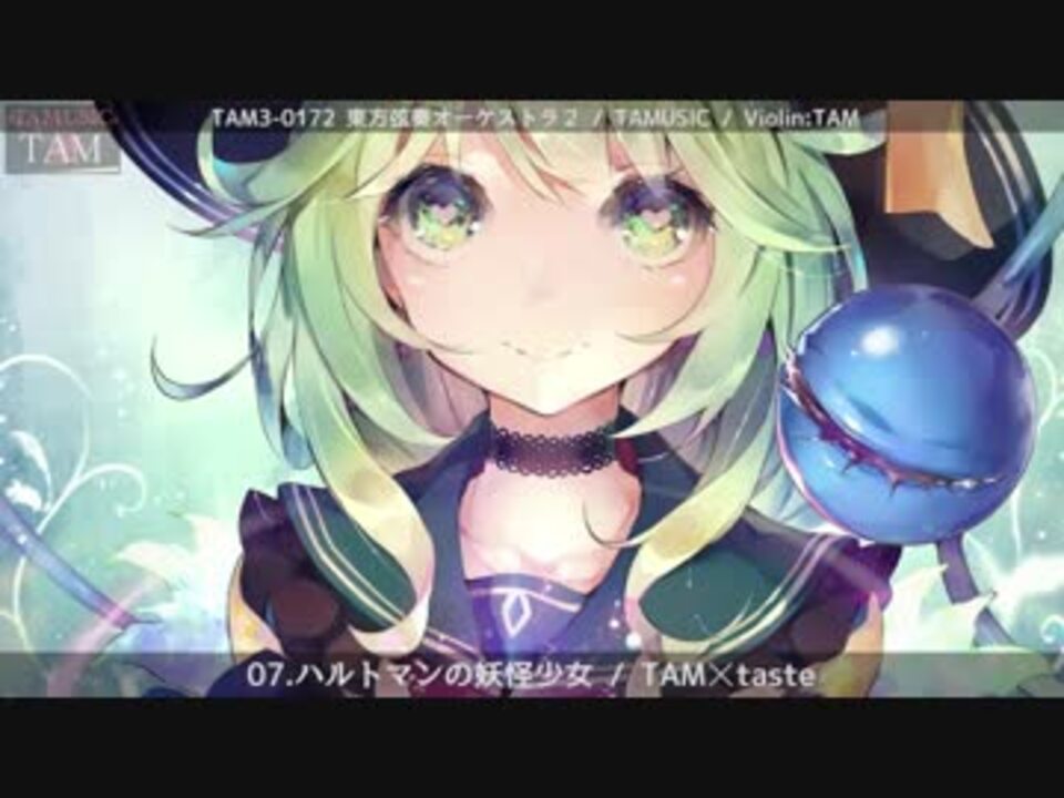 <br>TAM3-0172 東方弦奏オーケストラ2 | TAMUSIC<br><a href="http://tamusic.jp/TAM3-0172/" target="_blank" rel="noopener nofollow">http://tamusic.jp/TAM3-0172/</a><br><br><br>TAM3-0172 東方弦奏オーケストラ2<br>01.バイオリン独奏曲「弦奏の宵」<br>02.少女幻葬 ~ Necro-Fantasy / ネクロファンタジア<br>03.死体旅行 ~ Be of good cheer!<br>04.少女さとり ~ 3rd eye<br>05.シンデレラケージ ~ Kagome-Kagome / 狂気の瞳 ~ Invisible Full Moon<br>06.輝く針の小人族 ~ Little Princess<br>07.ハルトマンの妖怪少女<br>08.亡き王女の為のセプテット / ツェペシュの幼き末裔<br>09.東方緋想天<br>10.バイオリン独奏曲「水面の少女」<br><br>コンサートマスター:TAM(バイオリン)<br><br>・compose<br>01.10.TAM<br>02.-08.ZUN<br>09.あきやまうに<br><br>・Arrange<br>(既出公開曲バイオリン生演奏リメイク)<br>01.10.TAM<br>02.05.08.TAM☓青汁<br>03.07.TAM☓taste<br>04.TAM☓原田圭佑<br>06.TAM☓彩音P<br>09.TAM×Virus Key<br><br>Illust:DeeCHA<br><br>ORIGINAL:東方Project