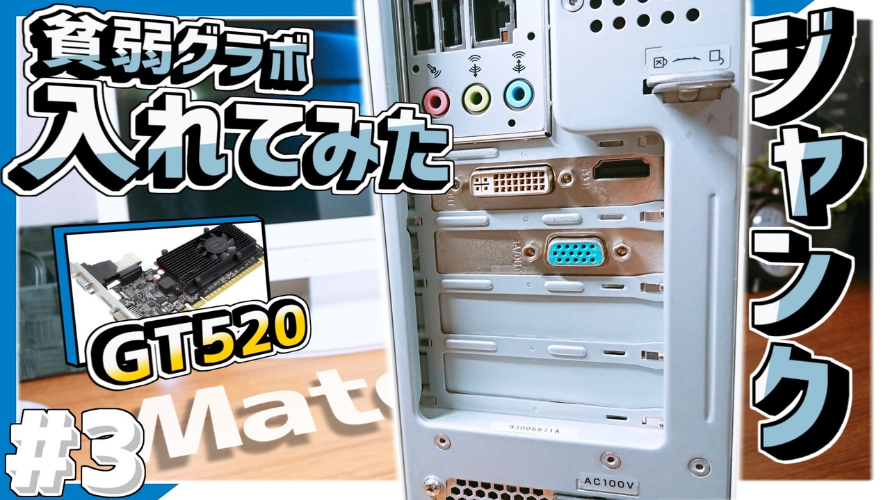 <span style="color: #0a0a0a; font-size: 14px;">part1はこちら【</span><a href="https://www.nicovideo.jp/watch/sm34343059" class="watch">sm34343059</a>】<br><span style="color: #0a0a0a; font-size: 14px;">part2はこちら【</span><a href="https://www.nicovideo.jp/watch/sm34342978" class="watch">sm34342978</a>】<br><span style="color: #0a0a0a; font-size: 14px;">................................................</span><br>今回は、HARD・OFFのジャンクコーナーにて購入してきたNEC製Mate MA-6 の動画、パート3です!<br>前回、メモリー4GBやSSDを搭載したジャンクMateに、グラボを搭載していきます!<br>果たして、快適に動画視聴できるサブ機は完成するのでしょうか!<br><span style="color: #0a0a0a; font-size: 14px;">................................................</span><br>吉田さんすいませんでした。<br>冒頭でパクった吉田さんのチャンネルはこちら<br><a href="https://www.youtube.com/channel/UC9WJo5ZJVXMZiA5XV2jLx5Q" target="_blank" rel="noopener nofollow">https://www.youtube.com/channel/UC9WJo5ZJVXMZiA5XV2jLx5Q</a><br /><span style="color: #000000; font-size: 13px;">................................................</span><br><strong>《</strong><span style="color: #ff0000;"><strong>youtubeチャンネル</strong></span><strong>》</strong><br><span style="color: #ff0000;"><a href="https://youtube.com/ResponsePC" target="_blank" rel="noopener nofollow">https://youtube.com/ResponsePC</a></span><br><span style="font-size: 13px;">................................................</span><br><strong>《</strong><span style="color: #3d85c6;"><strong>Twitter</strong></span><strong>》</strong><br><span style="color: #3d85c6;"> <a href="https://t.co/0ZXdcNsxGg" target="_blank" rel="noopener nofollow">https://t.co/0ZXdcNsxGg</a></span>