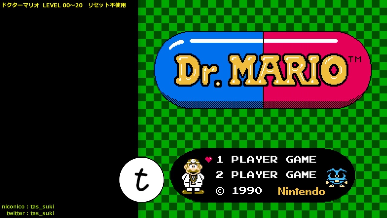 6秒ほど縮みました。<br>そのうち5.5秒ほどは ちぃがぅさんがやってくれました。<br><br><br>FC [NES] ドクターマリオ (Dr. Mario) Lv00〜20(リセット不使用)のTASの試走です。<br><br>基本的に現行TAS (<a href="https://www.nicovideo.jp/watch/sm33849426" class="watch">sm33849426</a>, いなりはちまん氏, 2018/09) の真似です。<br>いろいろ弄ってたらなんか縮んじゃってました。<br>上記の現行TASによると 31077f とのことなので、360f の短縮となりました。<br>なお、そのうち 330f は ちぃがぅ氏 (<a href="https://www.nicovideo.jp/user/47809" target="_blank" rel="noopener">user/47809</a>) によるものです。<br><br> 追記数: 7509 フレーム数:30717f<br><br /><br>------------- 以下 共通説明文 -------------<br><br><strong>PIXIV FANBOX や Amazon にて支援を募っています。よかったらぜひ。<br>FANBOX : <a href="https://www.fanbox.cc/@tas-suki" target="_blank" rel="noopener nofollow">https://www.fanbox.cc/@tas-suki</a><br>Wish List : <a href="https://www.amazon.co.jp/hz/wishlist/ls/3M57V3BKOO1N9" target="_blank" rel="noopener nofollow">https://www.amazon.co.jp/hz/wishlist/ls/3M57V3BKOO1N9</a></strong><br><br><strong>twitter : <a href="https://twitter.com/tas_suki" target="_blank" rel="noopener nofollow">https://twitter.com/tas_suki</a><br>RTA : <a href="https://www.speedrun.com/user/tas_suki" target="_blank" rel="noopener nofollow">https://www.speedrun.com/user/tas_suki</a></strong><br><br><span style="color: #20124d;"><strong>※ 2021/10 以降は、不定期に動画を投稿しています。</strong></span><br><br> ・Posted TASes (recently)<br>05/31 <a href="https://www.nicovideo.jp/watch/sm42293404" class="watch">sm42293404</a> (PC)<br>04/30 <a href="https://www.nicovideo.jp/watch/sm42136556" class="watch">sm42136556</a> (PC)<br>02/28 <a href="https://www.nicovideo.jp/watch/sm41812217" class="watch">sm41812217</a> (MD)<br>12/25 <a href="https://www.nicovideo.jp/watch/sm41553821" class="watch">sm41553821</a> (PC)<br>11/08 <a href="https://www.youtube.com/watch?v=Lj6N0bm3lyo" target="_blank" rel="noopener nofollow">https://www.youtube.com/watch?v=Lj6N0bm3lyo</a> (PC)<br>09/29 <a href="https://www.youtube.com/watch?v=gRelRaVcyQg" target="_blank" rel="noopener nofollow">https://www.youtube.com/watch?v=gRelRaVcyQg</a> (PC)<br>07/01 <a href="https://www.youtube.com/watch?v=28G366IdmPE" target="_blank" rel="noopener nofollow">https://www.youtube.com/watch?v=28G366IdmPE</a> (PC)<br>05/31 <a href="https://www.nicovideo.jp/watch/sm40538452" class="watch">sm40538452</a> (PC)<br><br> ・Posted TASes (2016/04 ~ )<br><a href="http://www.nicovideo.jp/user/56935712/video" target="_blank" rel="noopener nofollow">http://www.nicovideo.jp/user/56935712/video</a><br><br> ・Posted TASes that are the current fastest records<br><a href="https://www.nicovideo.jp/series/74250" target="_blank" rel="noopener nofollow">https://www.nicovideo.jp/series/74250</a>