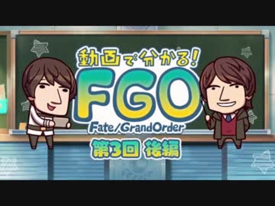 <font color="#0a0a0a">この番組はTYPE-MOONが贈るスマートフォン向けRPG『Fate/Grand Order』を始めたばかりの方を、先輩マスター・ノッブと新米マスター・大海将一郎さんとともに手助けするミニ番組。第3回のテーマは「バトルに行ってみよう」今回は前後編に分けてお届けします。後編ではコマンドカードの選び方のコツや宝具についてご紹介!ぜひ、お楽しみください! ■出演者 先輩マスター・ノッブ(CV.島﨑信長) 新米マスター・大海将一郎 ■関連サイト ・動画で分かる!Fate/Grand Order </font><a href="https://www.fate-go.jp/douga_fgo/" target="_blank" rel="noopener nofollow">https://www.fate-go.jp/douga_fgo/</a><font color="#0a0a0a">・Fate/Grand Order公式サイト </font><a href="http://www.fate-go.jp/" target="_blank" rel="noopener nofollow">http://www.fate-go.jp/</a><font color="#0a0a0a">・Fate/Grand Order公式Twitter </font><a href="https://twitter.com/fgoproject" target="_blank" rel="noopener nofollow">https://twitter.com/fgoproject</a><font color="#0a0a0a"> ©TYPE-MOON / FGO PROJECT<br><br></font><font color="#333333">Fate関係マイリスト作りました</font><br><font color="#333333">過去の動画はこちらからどうぞ</font><br><font color="#333333">【Part2】</font><a href="https://www.nicovideo.jp/mylist/63296233" target="_blank" rel="noopener">mylist/63296233</a><br><font color="#333333">【Part1】</font><a href="https://www.nicovideo.jp/mylist/60253726" target="_blank" rel="noopener">mylist/60253726</a><font color="#333333"> </font>