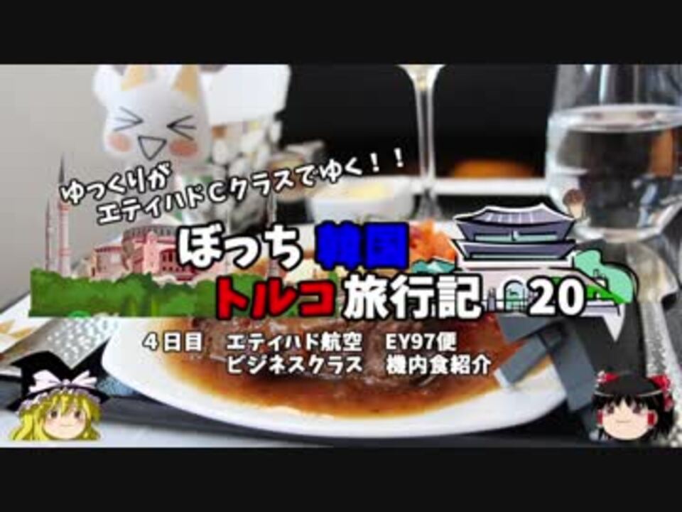 <font color="#ff0000" size="4"><u>※Youtubeで1話分、先行配信中 </u></font><br><font color="#0000ff" size="4"> <a href="http://www.youtube.com/c/なめこのぼっち旅" target="_blank" rel="noopener nofollow">http://www.youtube.com/c/なめこのぼっち旅</a></font> <br><br><b> </b>今回はアブダビ→トルコへ!<br>そしてエティハド航空のビジネスクラスを堪能しますよ!<br>次回の投稿は12/31 動画納めです。<br><br>第1話→<a href="https://www.nicovideo.jp/watch/sm34047420" class="watch">sm34047420</a><br><br>第1章・・・韓国観光編<br> 第2章・・・出発編<font color="#ff0000">←今ココ</font><br> 第3章・・・トルコ観光編<br> 第4章・・・帰路編<br><br><font color="#ff0000">コミュニティー→co2910020</font><br> twitter→<a href="https://twitter.com/ryontan" target="_blank" rel="noopener nofollow">https://twitter.com/ryontan</a><br><br><a href="https://www.nicovideo.jp/watch/sm34351964" class="watch">sm34351964</a>←前回 <font color="#ff0000">次回 21話→<a href="https://www.nicovideo.jp/watch/sm34402723" class="watch">sm34402723</a></font><br><br>解説・雑談系→<a href="https://www.nicovideo.jp/mylist/63171869" target="_blank" rel="noopener">mylist/63171869</a><br>今作 韓国トルコ旅行記→<a href="https://www.nicovideo.jp/mylist/63654428" target="_blank" rel="noopener">mylist/63654428</a><br>今作 車中泊旅行記→<a href="https://www.nicovideo.jp/mylist/54706524" target="_blank" rel="noopener">mylist/54706524</a><br>前作 久米島(沖縄)旅行記→<a href="https://www.nicovideo.jp/mylist/63059251" target="_blank" rel="noopener">mylist/63059251</a><br><b></b>イギリスタイ旅行記→<a href="https://www.nicovideo.jp/mylist/60044833" target="_blank" rel="noopener">mylist/60044833</a><br>クルーズ旅行記→<a href="https://www.nicovideo.jp/mylist/57397685" target="_blank" rel="noopener">mylist/57397685</a><br>ドイツ周遊記→<a href="https://www.nicovideo.jp/mylist/54938346" target="_blank" rel="noopener">mylist/54938346</a><br>北海道旅行記→<a href="https://www.nicovideo.jp/mylist/52618057" target="_blank" rel="noopener">mylist/52618057</a><br>アメリカ横断記→<a href="https://www.nicovideo.jp/mylist/48621785" target="_blank" rel="noopener">mylist/48621785</a><br>イタリア周遊記→<a href="https://www.nicovideo.jp/mylist/45763559" target="_blank" rel="noopener">mylist/45763559</a><br>NY旅行記→<a href="https://www.nicovideo.jp/mylist/44343854" target="_blank" rel="noopener">mylist/44343854</a><font color="#ff0000" size="5"><font color="#000000" size="2"><br></font></font>