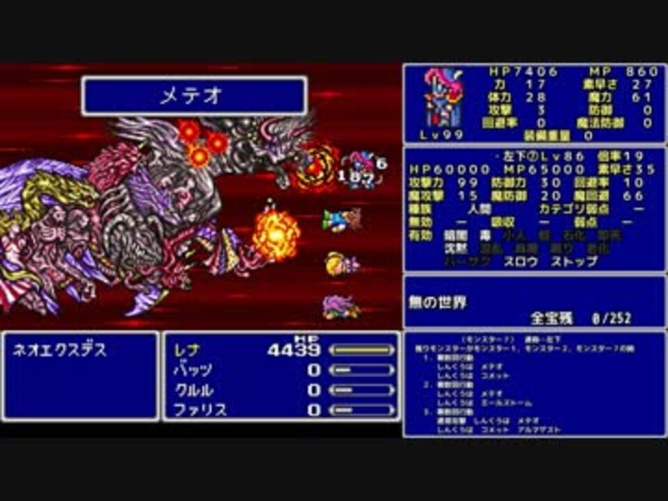 <span style="font-size: 13px;"><i>そのときふしぎな事が起こっ</i></span><span style="color: #545454; font-size: 13px;">た</span> <br><br>★縛り内容★<br>魔法のみ(白黒時召青)<br>全裸<br>魔法以外の行動不可<br>魔法を使えるジョブのみ<br>アクティブスピード1<br>宝箱回収率100%<br>アイテムの使用は移動中のセーブ可能な場所でのみ<br>勝率0%確定したら最小限のその時だけの解放を考えて続行する<br>ボスを即死等であっさり倒したら使わない戦闘も頑張る<br><br>FF5一覧…<a href="https://www.nicovideo.jp/mylist/56239646" target="_blank" rel="noopener">mylist/56239646</a><br><br>字幕のみPart70… <a href="https://youtu.be/0c__WV8VzIU" target="_blank" rel="noopener nofollow">https://youtu.be/0c__WV8VzIU</a> <br><br>○付録○ <a href="https://www.nicovideo.jp/watch/sm34480399" class="watch">sm34480399</a><br>○次作○ <a href="https://www.nicovideo.jp/watch/sm34595412" class="watch">sm34595412</a><br>○決戦○ Part68…<a href="https://www.nicovideo.jp/watch/sm34400978" class="watch">sm34400978</a><br>○前回○ Part69…<a href="https://www.nicovideo.jp/watch/sm34407025" class="watch">sm34407025</a><br><br>Youtube版 … <a href="https://youtu.be/bFoApHZiJ-4" target="_blank" rel="noopener nofollow">https://youtu.be/bFoApHZiJ-4</a><br /><br>ふよふよしているの<br>絵:横沢さわらさん VOICEVOX:WhiteCUL<br><br>【シリーズ】<br>くうねるきゃんぷ … <a href="https://www.nicovideo.jp/series/516069" target="_blank" rel="noopener">series/516069</a><br>お写んぽ! … <a href="https://www.nicovideo.jp/series/435756" target="_blank" rel="noopener">series/435756</a><br>様子がおかしい! … <a href="https://www.nicovideo.jp/series/418875" target="_blank" rel="noopener">series/418875</a><br>FF7 魔法マテリアのみ初期防具ガールズ一人旅ASM … <a href="https://www.nicovideo.jp/series/438696" target="_blank" rel="noopener">series/438696</a><br>きんかつ!V-STROM1050XT … <a href="https://www.nicovideo.jp/series/144466" target="_blank" rel="noopener">series/144466</a><br>FF6 魔法のみ全裸ガールズ一人旅AS1 … <a href="https://www.nicovideo.jp/series/9438" target="_blank" rel="noopener">series/9438</a><br>おバイク!GLADIUS400 ABS … <a href="https://www.nicovideo.jp/series/68579" target="_blank" rel="noopener">series/68579</a><br>FF5 魔法のみ全裸一人旅AS1 … <a href="https://www.nicovideo.jp/series/9432" target="_blank" rel="noopener">series/9432</a><br>DQ3 呪文のみ全裸一人旅 … <a href="https://www.nicovideo.jp/series/9416" target="_blank" rel="noopener">series/9416</a><br>DQ2 ムーンブルクの王女一人旅 … <a href="https://www.nicovideo.jp/series/9414" target="_blank" rel="noopener">series/9414</a><br>DQ1 全裸 … <a href="https://www.nicovideo.jp/series/9412" target="_blank" rel="noopener">series/9412</a><br>FE 紋章の謎 天馬騎士単騎 第2部 英雄戦争 … <a href="https://www.nicovideo.jp/series/9404" target="_blank" rel="noopener">series/9404</a><br>FE 紋章の謎 天馬騎士単騎 第1部 暗黒戦争 … <a href="https://www.nicovideo.jp/series/9401" target="_blank" rel="noopener">series/9401</a><br>聖剣2 全裸プリム一人旅 武器Lv1など … <a href="https://www.nicovideo.jp/series/9396" target="_blank" rel="noopener">series/9396</a><br>ロマサガ2 魔術士不得意武器のみ … <a href="https://www.nicovideo.jp/series/9388" target="_blank" rel="noopener">series/9388</a><br>ロマサガ1 術法のみ一人旅で各イベント攻略 … <a href="https://www.nicovideo.jp/series/9386" target="_blank" rel="noopener">series/9386</a><br><br>SNSとか色々なリンク … <a href="https://lit.link/Unaa" target="_blank" rel="noopener nofollow">https://lit.link/Unaa</a>