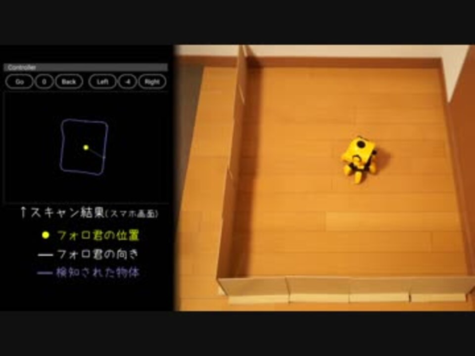 今回は、フォロ君に回転角センサと測距センサを搭載し、部屋の形状をスキャンできるように育ててみました。<br>リアルタイムに部屋の形状が更新されるので、ちょっと面白い。<br><br>↓詳細な解説は、こちらのブログにて。<br><a href="http://watako-lab.com/folo_distsens/" target="_blank" rel="noopener nofollow">http://watako-lab.com/folo_distsens/</a> <br><br>↓Twitter <br><a href="https://mobile.twitter.com/WatakoLab" target="_blank" rel="noopener nofollow">https://mobile.twitter.com/WatakoLab</a><br><br>↓ニコニコ動画作品一覧 <br><a href="https://www.nicovideo.jp/mylist/60299490" target="_blank" rel="noopener">mylist/60299490</a><br><br>※フォロは、エレキットさんから販売されているロボット製品です。(<a href="https://www.elekit.co.jp/product/MR-9107)" target="_blank" rel="noopener nofollow">https://www.elekit.co.jp/product/MR-9107)</a><br>