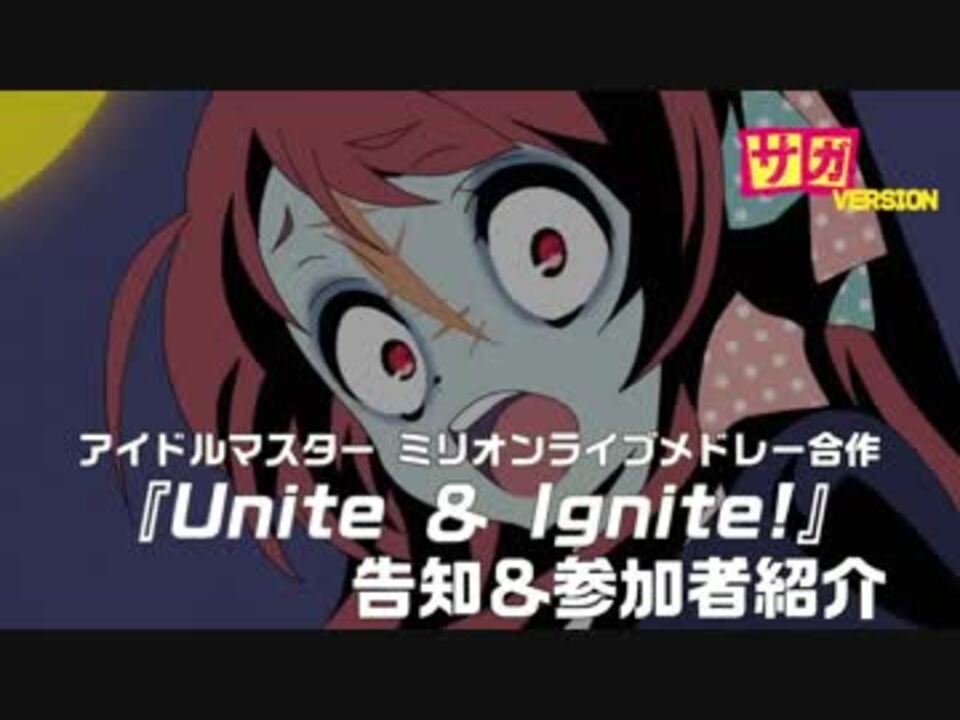 <font size="3"><b>「MS合作に呼ばれなかった人合作(仮)」</b></font>改め<br><font size="4"><b><font color="#ff0000">ミリオンライブメドレー合作 「Unite&Ignite!」</font></b></font>の参加者<br><font size="3"><b>総勢14名</b></font>を佐賀風味たっぷりでご紹介いたします!<br><br>くしくも <font size="2"><s><b>なんやかんやで墓からドーンしてきたゾンビィ</b></s></font> 伝説の?古参P と被害者の若手P)の合作となった今作、<br><font color="#ff0000"><font size="4"><b>1月12日(土) 20:00 に公開されました!<br></b></font></font><b><font size="3">本編: <a href="https://www.nicovideo.jp/watch/sm34453779" class="watch">sm34453779</a></font><br></b><font size="3"><b>Curtain Call: <a href="https://www.nicovideo.jp/watch/sm34460318" class="watch">sm34460318</a></b></font> <br><br>注)当動画は元の告知動画を利用した「勝手に支援動画」です 。<br><br>告知動画: <a href="https://www.nicovideo.jp/watch/sm34327999" class="watch">sm34327999</a> (赤ペンP:主宰) <font size="1">※公開予定日が昨年末になっております </font><br>新告知動画: <a href="https://www.nicovideo.jp/watch/sm34438456" class="watch">sm34438456</a> (ごまP) <br>佐賀告知動画: これ (けまり部P) <br>南極告知動画: <a href="https://www.nicovideo.jp/watch/sm34459048" class="watch">sm34459048</a> (赤ペンP)<br><br>ブロマガ<br><a href="http://ch.nicovideo.jp/redpenteacher" target="_blank" rel="noopener nofollow">http://ch.nicovideo.jp/redpenteacher</a> <br>参加者紹介記事<br>主催陣紹介: <a href="https://ch.nicovideo.jp/article/ar1702566" target="_blank" rel="noopener">ar1702566</a><br>その1: <a href="https://ch.nicovideo.jp/article/ar1702567" target="_blank" rel="noopener">ar1702567</a><br>その2: <a href="https://ch.nicovideo.jp/article/ar1702568" target="_blank" rel="noopener">ar1702568</a><br>その3: <a href="https://ch.nicovideo.jp/article/ar1702569" target="_blank" rel="noopener">ar1702569</a><br>その4: <a href="https://ch.nicovideo.jp/article/ar1702570" target="_blank" rel="noopener">ar1702570</a><br><br>よろしくお願い致します!