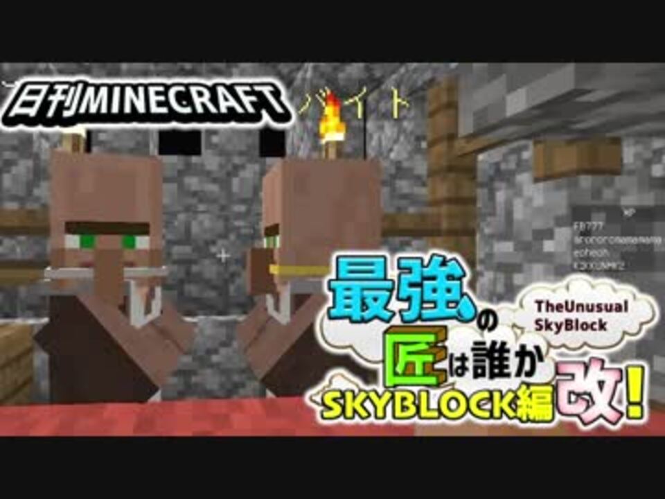 全世界のみんな、スカイブロックってか日刊マインクラフト!!<br>遂にこのワールドでの生き方を覚え始めたMSSP!<br>デッドオアアライブ!死か生か大体死か死で島を攻略していきます!<br><br>★FB777→黒服。マイクラ歴7年。アイテムロストテクノロジー。<br>★あろま→マスターチーフ。マイクラ歴7年。農園ラブファントム。<br>★EOHEOH→素スティーブ。マイクラ歴7年。脳筋マスターアジア。<br>★KIKKUN-MK-Ⅱ→ヨッシー。マイクラ歴7年。ニンジャカジャカじゃんけん。<br><br>高画質&詳細文はこちら→<a href="https://youtu.be/86ep19bpnac" target="_blank" rel="noopener nofollow">https://youtu.be/86ep19bpnac</a><br>TheUnusualSkyBlock→<a href="https://skyblock.jp/" target="_blank" rel="noopener nofollow">https://skyblock.jp/</a><br><br>前回→<a href="https://www.nicovideo.jp/watch/sm34467228" class="watch">sm34467228</a> 次回→<a href="https://www.nicovideo.jp/watch/sm34481976" class="watch">sm34481976</a><br>マイクラマイリス→<a href="https://www.nicovideo.jp/mylist/34003718" target="_blank" rel="noopener">mylist/34003718</a><br><br />▼Limited Abyss History 2026年MSSP音楽ライブ情報も!<br>16周年グッズや16周年のMSSPの最新情報一覧はこちらから!<br>MSSPオフィシャルサイト<br><a href="https://mssp-web.com/" target="_blank" rel="noopener nofollow">https://mssp-web.com/</a><br><br>▼MSSP最新ミニアルバム『サンダーボルト』リリース中!!<br>MV <a href="https://youtu.be/6fNvrd0qMfg" target="_blank" rel="noopener nofollow">https://youtu.be/6fNvrd0qMfg</a><br><a href="https://mssp-web.com/discography/kp7f4ff2ntm/" target="_blank" rel="noopener nofollow">https://mssp-web.com/discography/kp7f4ff2ntm/</a><br><br>▼15年分のMSSP音源&新曲が詰まった超ウルトラベスト盤<br>『M.S.S.Platinum BEST』発売中!オンライン販売はこちら↓<br><a href="https://ipshoten-online.com/products/ipst-0031" target="_blank" rel="noopener nofollow">https://ipshoten-online.com/products/ipst-0031</a><br><br>▼↓↓↓M.S.S Projectの動画の切り抜き動画公開に関しての<br>ガイドラインは此方のブロマガをご覧ください!↓↓↓<br><a href="https://ch.nicovideo.jp/mssp/blomaga/ar2087761" target="_blank" rel="noopener nofollow">https://ch.nicovideo.jp/mssp/blomaga/ar2087761</a><br><br>▼MSSPオフィシャルサイト<br><a href="https://mssp-web.com/" target="_blank" rel="noopener nofollow">https://mssp-web.com/</a><br>▼MSSPライブサイト<br><a href="https://live.mssp-web.com/2025w/" target="_blank" rel="noopener nofollow">https://live.mssp-web.com/2025w/</a><br>▼MSSPグッズショップサイト<br><a href="https://official-goods-store.jp/mssproject/" target="_blank" rel="noopener nofollow">https://official-goods-store.jp/mssproject/</a><br>▼Youtube M.S.S Project ライブ(実写、生放送)<br><a href="https://www.youtube.com/c/NewMSSP" target="_blank" rel="noopener nofollow">https://www.youtube.com/c/NewMSSP</a><br>▼Youtube M.S.S Project ゲーム<br><a href="https://www.youtube.com/@MSSP" target="_blank" rel="noopener nofollow">https://www.youtube.com/@MSSP</a><br>▼ニコニコ動画 M.S.S Projectチャンネル<br><a href="http://ch.nicovideo.jp/mssp/blomaga" target="_blank" rel="noopener nofollow">http://ch.nicovideo.jp/mssp/blomaga</a><br>▼ニコニコM.S.S Project実況動画 <br><a href="http://www.nicovideo.jp/mylist/14610850" target="_blank" rel="noopener nofollow">http://www.nicovideo.jp/mylist/14610850</a>