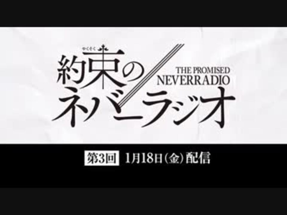 エマ役・諸星すみれさんとフィル役・河野ひよりさんが「約束のネバーランド」の情報をお届けするWEBラジオ!<br>たくさんのメールをお待ちしています。<br>TVアニメ「約束のネバーランド」は1月10日(木)25時10分よりフジテレビ“ノイタミナ”ほかにて放送開始!(初回15分押し)<br>Amazon Prime Videoにて1月9日24時頃より第1話先行配信!<br><br>■コーナー紹介<br>・GFメール<br>作品の舞台「グレイス=フィールドハウス」にちなんで、<br>「グレイス=普通のメール」ふつおたをご紹介します。<br>作品にまつわる“おたより”を皆さんから大募集!<br>パーソナリティへのメッセージも大歓迎!<br>・抗え。リスナーの運命に!<br>リスナーの皆さんから「今抗っていること」、「立ち向かっていること」、<br>「挑んでること」、「覆したいこと」を大募集!<br>リスナーさんを“運命”と言う箱庭から脱出させるべく、<br>諸星さん・河野さんが真剣に打開策を考えます。<br>・10Secondsテストルーム<br>諸星さん・河野さんが様々な「10秒で結果の出る様々なテスト」に挑戦!<br>2人にやってほしい、簡単にできて結果がでるテストを募集します。<br>おたより募集中!<br><a href="https://neverland-anime.com/radio/" target="_blank" rel="noopener nofollow">https://neverland-anime.com/radio/</a><br><br>TVアニメ「約束のネバーランド」<br>公式サイト:<a href="https://neverland-anime.com/" target="_blank" rel="noopener nofollow">https://neverland-anime.com/</a><br>公式Twitter:<a href="https://twitter.com/yakuneba_staff" target="_blank" rel="noopener nofollow">https://twitter.com/yakuneba_staff</a><br>公式Instagram:<a href="https://www.instagram.com/neverland_a..." target="_blank" rel="noopener nofollow">https://www.instagram.com/neverland_a...</a><br>公式LINE@:<a href="https://line.me/R/ti/p/%40mvs7156d" target="_blank" rel="noopener nofollow">https://line.me/R/ti/p/%40mvs7156d</a><br><a href="https://www.nicovideo.jp/mylist/64257282" target="_blank" rel="noopener">mylist/64257282</a>