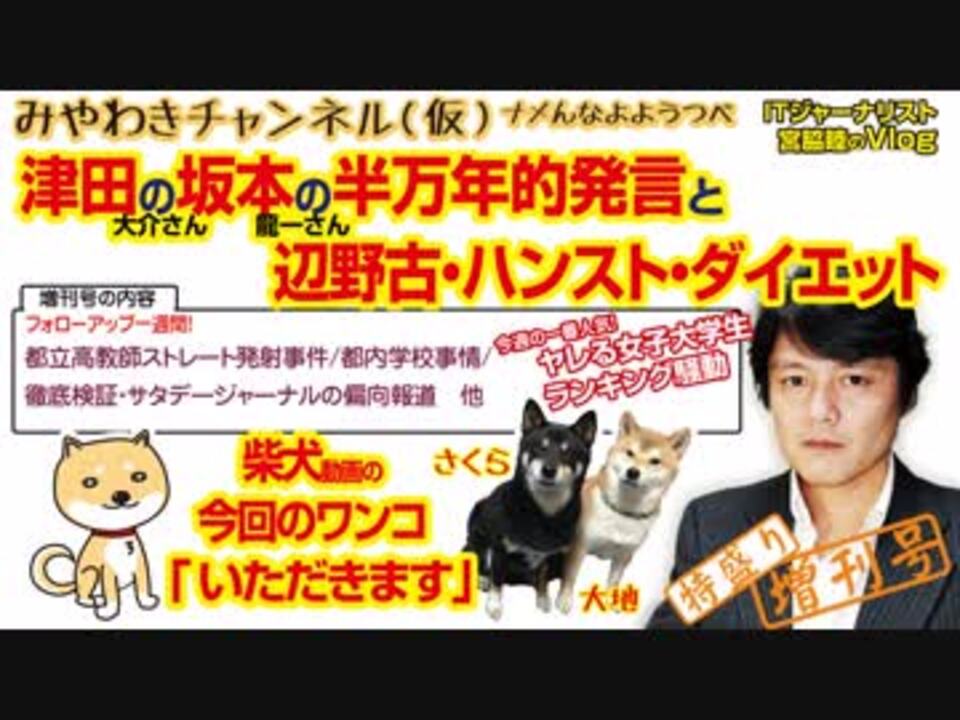 みやわきチャンネル(仮)特盛り増刊号<br>・今週の一番人気!<br>0:50 ヤレる女子大学生ランキング騒動<br>・フォローアップ一週間!<br>4:09 都立高教師ストレート発射事件、都内高校・公立中学校事情<br>10:17 平和を愛する諸国民はどこにいる?<br>13:18 徹底検証・サタデージャーナルの偏向報道<br>10:17 国内の著名人は「左派」ばかり<br><br>みやわきチャンネル(仮)#339Restart195<br>(旧・マスコミでは言えないこと)<br>オリジナル2019年1月2日配信<br><br>番組の最後に「柴犬」のコーナーがあります。<br>今回のワンコ「いただきます」<br><br><br>■わんこ総集編はこちらから!<br>今回のワンコ総集編〜さくら&大地〜<br><a href="https://www.youtube.com/channel/UChwY..." target="_blank" rel="noopener nofollow">https://www.youtube.com/channel/UChwY...</a><br><br>■ニコニコ動画<br><a href="http://www.nicovideo.jp/user/13610165" target="_blank" rel="noopener nofollow">http://www.nicovideo.jp/user/13610165</a><br>■FRESH LIVE<br><a href="https://freshlive.tv/miyawaki-ch" target="_blank" rel="noopener nofollow">https://freshlive.tv/miyawaki-ch</a><br>■FC2動画<br><a href="https://video.fc2.com/account/16696711" target="_blank" rel="noopener nofollow">https://video.fc2.com/account/16696711</a><br>■YouTube(理不尽に消えることあり)<br><a href="https://www.youtube.com/c/AtsushiMiyawaki" target="_blank" rel="noopener nofollow">https://www.youtube.com/c/AtsushiMiyawaki</a><br><br>■いつ「消える」かわかりません。<br>そこでオフィシャルサイトで「非常用連絡先」をご確認ください。<br>「みやチャン(仮)」公式サイト「MiyawakiNewsNetwork」<br><a href="http://www.miyawakiatsushi.net" target="_blank" rel="noopener nofollow">http://www.miyawakiatsushi.net</a><br><br>■理不尽に消えたとき、以下で情報配信しております。ぜひ、ご登録ください。<br><br>■ツイッター<br><a href="https://twitter.com/miyawakiatsushi" target="_blank" rel="noopener nofollow">https://twitter.com/miyawakiatsushi</a><br>■Facebook<br><a href="https://www.facebook.com/miyawakiatsushi" target="_blank" rel="noopener nofollow">https://www.facebook.com/miyawakiatsushi</a>