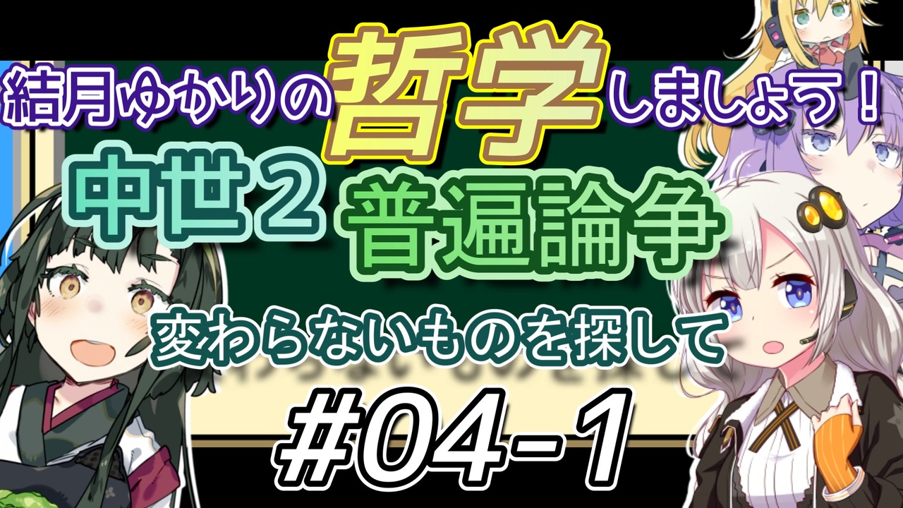 「ずんだ」とは(哲学)<br>今回は中世ヨーロッパ哲学、中編です。(本編は <a href="#" class="seekTime" data-seekTime="3:05" onclick="seekNicoPlayer('#3:05'); return false;">#3:05</a> )<br>よければお付き合いください。<br><br><a href="#" class="seekTime" data-seekTime="00:00" onclick="seekNicoPlayer('#00:00'); return false;">#00:00</a> 茶番<br><a href="#" class="seekTime" data-seekTime="03:05" onclick="seekNicoPlayer('#03:05'); return false;">#03:05</a> 本編<br><a href="#" class="seekTime" data-seekTime="15:13" onclick="seekNicoPlayer('#15:13'); return false;">#15:13</a> おまけ<br><br>前→ <a href="https://www.nicovideo.jp/watch/sm34354669" class="watch">sm34354669</a><br>次→ <a href="https://www.nicovideo.jp/watch/sm34518888" class="watch">sm34518888</a><br /><strong>Youtube はじめました<br><a href="https://www.youtube.com/channel/UCseCeyYQq6epyNzf1hbm-WQ" target="_blank" rel="noopener nofollow">https://www.youtube.com/channel/UCseCeyYQq6epyNzf1hbm-WQ</a></strong><br><br><strong>【New】</strong><br>「【字幕付き】琴葉姉妹とほしめぐり【VOICEROID劇場】」<br>シリーズ→ <a href="https://www.nicovideo.jp/series/444552" target="_blank" rel="noopener">series/444552</a><br>Part1 → <a href="https://www.nicovideo.jp/watch/sm43090506" class="watch">sm43090506</a><br><br>他シリーズ→ <a href="https://www.nicovideo.jp/series/16986" target="_blank" rel="noopener">series/16986</a><br>「結月ゆかりの哲学しましょう」<br>マイリスト→ <a href="https://www.nicovideo.jp/mylist/63463022" target="_blank" rel="noopener">mylist/63463022</a><br>シリーズ → <a href="https://www.nicovideo.jp/series/16986" target="_blank" rel="noopener">series/16986</a><br>Part1 → <a href="https://www.nicovideo.jp/watch/sm33920383" class="watch">sm33920383</a><br>1分でわかる → <a href="https://www.nicovideo.jp/watch/sm41261724" class="watch">sm41261724</a><br><br>「結月ゆかりの「もっと」哲学しましょう」<br>シリーズ → <a href="https://www.nicovideo.jp/series/351485" target="_blank" rel="noopener">series/351485</a><br>Part1 → <a href="https://www.nicovideo.jp/watch/sm41015164" class="watch">sm41015164</a><br>new1分でわかる → <a href="https://www.nicovideo.jp/watch/sm41195696" class="watch">sm41195696</a><br><br>「【VOICEROID劇場】このアメ玉が溶けるまで」<br>シリーズ → <a href="https://www.nicovideo.jp/series/397530" target="_blank" rel="noopener">series/397530</a><br><br>「【VOICEROID】アンリアルライフ 【アテレコ】」<br>→ <a href="https://www.nicovideo.jp/series/342881" target="_blank" rel="noopener">series/342881</a> <br><br>「【ChatGPTが書く】タカハシ教授の哲学講義【CeVIO劇場】」<br>→ <a href="https://www.nicovideo.jp/series/396449" target="_blank" rel="noopener">series/396449</a><br><br>「【VOICEROID劇場】シラノ・ド・ベルジュラック」<br>→ <a href="https://www.nicovideo.jp/series/518063" target="_blank" rel="noopener">series/518063</a><br>第一幕→ <a href="https://www.nicovideo.jp/watch/sm45011537" class="watch">sm45011537</a>