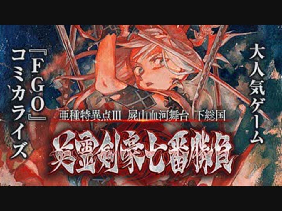<br>TYPE-MOON原作による渡れいの新連載「Fate/Grand Order -Epic of Remnant- 亜種特異点III 屍山血河舞台 下総国 英霊剣豪七番勝負」が、本日1月29日よりマガジンポケットにてスタートした。<br>本作はスマートフォン向けゲーム「Fate/Grand Order」のシナリオ第1.5部「Fate/Grand Order -Epic of Remnant-」のうちの1つ「亜種特異点III 屍山血河舞台 下総国 英霊剣豪七番勝負」をコミカライズしたもの。突如江戸時代の日本へと意識が奪われたカルデアのマスター・立香は、かつて夢で出会った女剣士・宮本武蔵と再会を果たすが……。<br />Fate関係マイリスト作りました<br>過去の動画はこちらからどうぞ<br>【Part6】<a href="https://www.nicovideo.jp/mylist/77458014" target="_blank" rel="noopener">mylist/77458014</a><br>【Part5】<a href="https://www.nicovideo.jp/mylist/72367759" target="_blank" rel="noopener">mylist/72367759</a><br>【Part4】<a href="https://www.nicovideo.jp/mylist/69569102" target="_blank" rel="noopener">mylist/69569102</a><br>【Part3】<a href="https://www.nicovideo.jp/mylist/66190415" target="_blank" rel="noopener">mylist/66190415</a><br>【Part2】<a href="https://www.nicovideo.jp/mylist/63296233" target="_blank" rel="noopener">mylist/63296233</a><br>【Part1】<a href="https://www.nicovideo.jp/mylist/60253726" target="_blank" rel="noopener">mylist/60253726</a><br><br><br>
