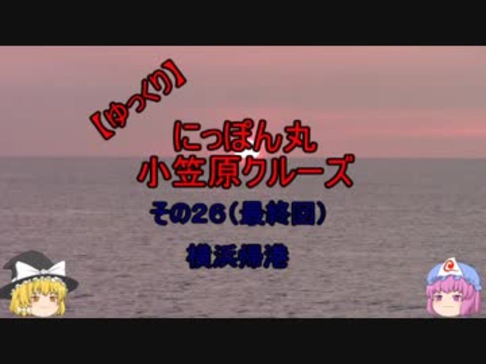 2018年7月中旬に行った小笠原クルーズの旅動画です~!<br><br>いよいよ今回で最終回を迎えることができました。<br>動画では5ヶ月のアップと言ってますが、半年近い<br>期間でしたかね。とにかく、完走出来てホッとしてます(笑)<br><br>動画内でも言ってるように、天候にも恵まれ、波で船も全然<br>揺れない旅で、素晴らしい 初めてのクルーズになりました。<br><br>下船していく乗客の皆さんも満足そうで、にっぽん丸と<br>一緒に嬉しそうに記念撮影してる表情が素敵で、そのまま<br>動画アップ出来ないのが心残りでした(笑)<br><br>色々と至らない旅動画であったと思いますが、こんな動画でも<br>視聴してくれた方々・・本当にどうも有難うございました。<br><br>機会があったら、また旅動画で会いましょう~!!<br><br><br><span style="color: #000000; font-size: 14px;"> その25 </span><a href="https://www.nicovideo.jp/watch/sm34526644" class="watch">sm34526644</a><span style="color: #000000; font-size: 14px;"> ← その26<br> <br>今回の旅動画<br>【ゆっくり】にっぽん丸 小笠原クルーズ </span><a href="https://www.nicovideo.jp/mylist/64524381" target="_blank" rel="noopener">mylist/64524381</a><br><br><span style="color: #000000; font-size: 14px;">過去の旅動画<br>2017年 【ゆっくり】フランス パリ ショコラとスイーツの旅 </span><span style="color: #006699; font-size: 14px;"><a href="https://www.nicovideo.jp/mylist/60413811" target="_blank" rel="noopener">mylist/60413811</a></span>