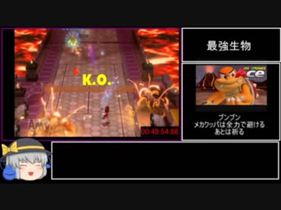 休憩回なので初投稿です。<br>ありそうでなかったマリオテニスエースのストーリーRTA解説動画です。<br><br>ドラえもんの予定でしたがスネ夫がそり立つ壁に阻まれたので先にこっち<br><br>マリオテニスDiscord<br><a href="https://discord.gg/3Xmz6U3" target="_blank" rel="noopener nofollow">https://discord.gg/3Xmz6U3</a><br><br>無編集版<br><a href="https://youtu.be/JJA1WIXtaTc" target="_blank" rel="noopener nofollow">https://youtu.be/JJA1WIXtaTc</a><br><br>計測開始:タイトル画面でL+Rを押した瞬間<br>計測終了:ラスボスに最後の一撃が当たった瞬間<br>Part1<br><a href="https://www.nicovideo.jp/watch/sm34419222" class="watch">sm34419222</a><br>まえ<br><a href="https://www.nicovideo.jp/watch/sm34504431" class="watch">sm34504431</a><br>つぎ<br><a href="https://www.nicovideo.jp/watch/sm34643175" class="watch">sm34643175</a><br><br>カービィ64 <br><a href="https://www.nicovideo.jp/mylist/60081749" target="_blank" rel="noopener">mylist/60081749</a><br><br>マリオテニス64シングルス<br><a href="https://www.nicovideo.jp/watch/sm32141172" class="watch">sm32141172</a><br><br>マリオテニス64ダブルス<br><a href="https://www.nicovideo.jp/watch/sm32971650" class="watch">sm32971650</a><br><br>マリパ2<br><a href="https://www.nicovideo.jp/watch/sm33052636" class="watch">sm33052636</a><br>