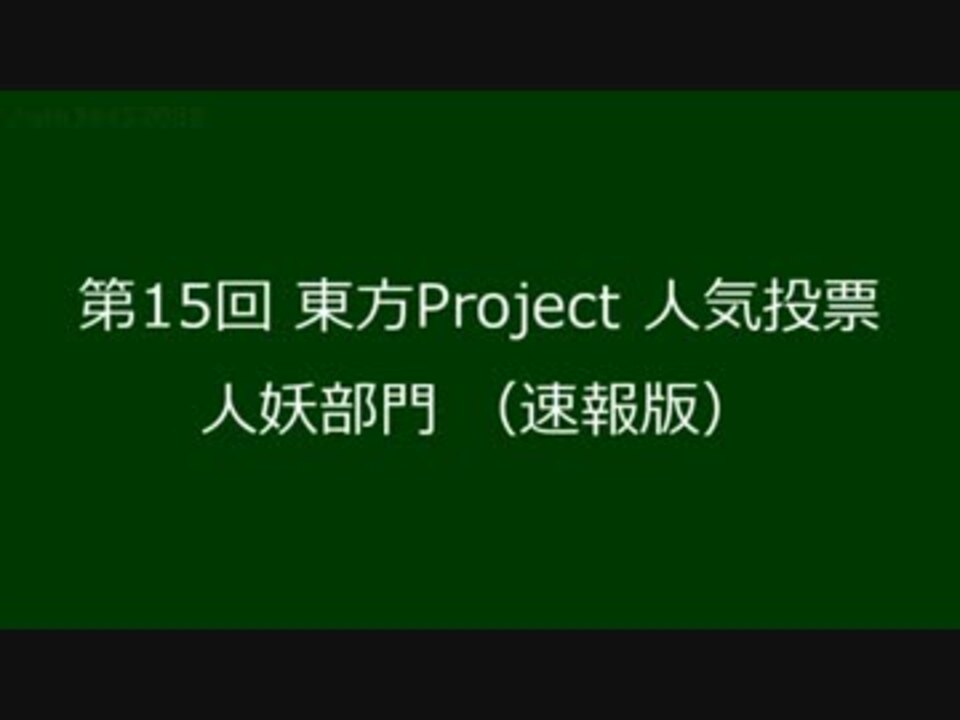 <a href="http://toho-vote.info/" target="_blank" rel="noopener nofollow">http://toho-vote.info/</a><br>東方Wiki様の第15回東方Project人気投票の結果が発表されたので<br>人妖部門の速報版を動画にしました<br><br>イラストはTouhouWiki様から、BGMは激戦の人様からお借りしました<br><br>【追記】たくさんのご広告ありがとうございます<br>