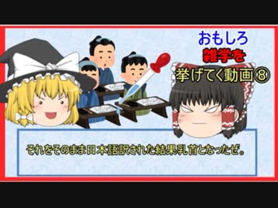ゆっくり霊夢と魔理沙がおもしろ雑学を挙げていく! <br> <br>本編は↓ブログを見てね!<br><span style="color: #0000ff;"><strong><a href="https://ameblo.jp/kaigohukusisisan/" target="_blank" rel="noopener nofollow">https://ameblo.jp/kaigohukusisisan/</a> </strong></span><br> <br>youtubeチャンネル(他動画あり!)<br><span style="color: #0000ff;"><strong><a href="https://www.youtube.com/channel/UCbZQ_fc_4yeVv8LYXJa9PGQ" target="_blank" rel="noopener nofollow">https://www.youtube.com/channel/UCbZQ_fc_4yeVv8LYXJa9PGQ</a><br> </strong></span><br>前回:おもしろ雑学を挙げてく動画⑦<br>ニコ動 <span style="color: #0000ff;"><strong><a href="https://www.nicovideo.jp/watch/sm34416586" target="_blank" rel="noopener nofollow">https://www.nicovideo.jp/watch/sm34416586</a></strong></span><br>Youtube <strong> </strong><span style="color: #0000ff;"><strong><a href="https://www.youtube.com/watch?v=2ey_xtqKmVk" target="_blank" rel="noopener nofollow">https://www.youtube.com/watch?v=2ey_xtqKmVk</a></strong></span><br><br>次回:おもしろ雑学を挙げてく動画⑨<br>ニコ動 <span style="color: #0000ff;"><strong><a href="https://www.nicovideo.jp/watch/sm34715885" target="_blank" rel="noopener nofollow">https://www.nicovideo.jp/watch/sm34715885</a></strong></span><br>Youtube <span style="color: #0000ff;"><strong><a href="https://www.youtube.com/watch?v=75pygVzC8pI&feature=youtu.be" target="_blank" rel="noopener nofollow">https://www.youtube.com/watch?v=75pygVzC8pI&feature=youtu.be</a></strong></span><br> <br>DVD販売ページ <span style="color: #0000ff;"><strong><a href="https://auctions.yahoo.co.jp/seller/gwftf515" target="_blank" rel="noopener nofollow">https://auctions.yahoo.co.jp/seller/gwftf515</a></strong></span><br>