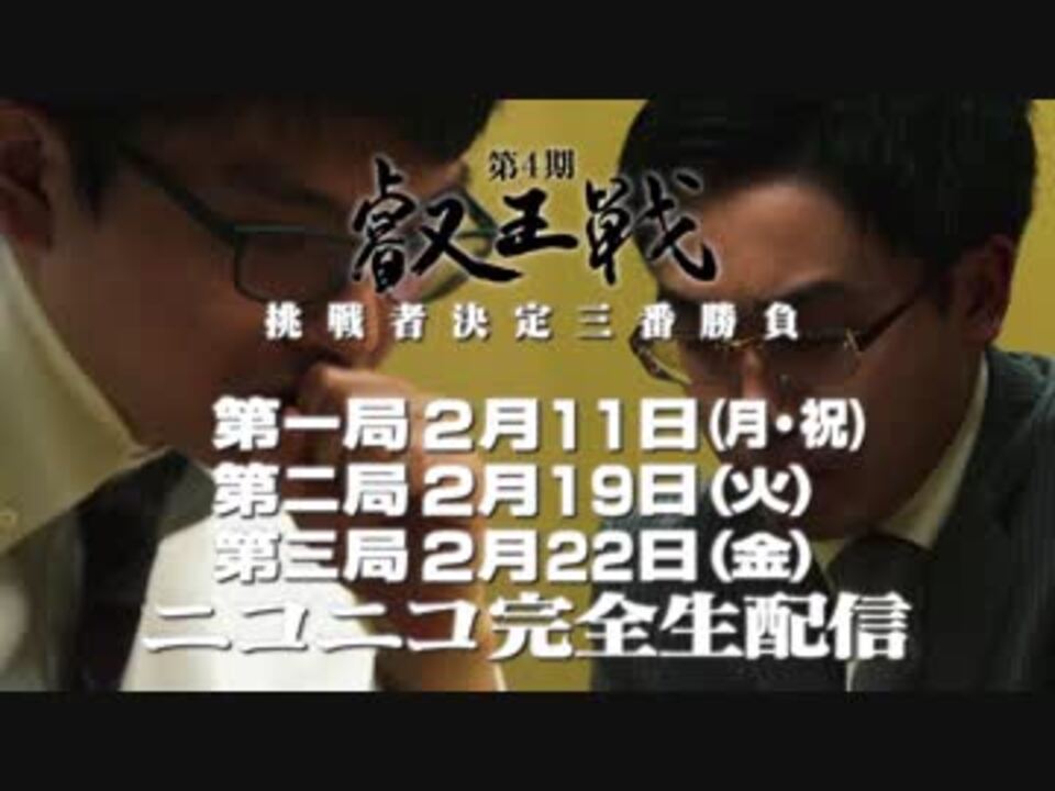 2018年6月、第4期叡王戦が開幕。<br>並み居る強豪に打ち勝ち、本戦トーナメントを昇りつめた二人。<br><br>永瀬拓矢七段 vs 菅井竜也七段<br><br>いみじくも、平成生まれの同級生対決となりました。<br><br>高見泰地叡王への挑戦権をかけ、新時代を切り開く対局が始まります。<br>すべての道は叡王戦に通ず。<br><br>▼「叡王戦」公式サイト<br><a href="http://www.eiou.jp/" target="_blank" rel="noopener nofollow">http://www.eiou.jp/</a><br><br>▼第4期叡王戦 挑戦者決定三番勝負<br>- 第1局 2月11日(月)14時 開演 <a href="https://live.nicovideo.jp/watch/lv318241542" target="_blank" rel="noopener">lv318241542</a><br>- 第2局 2月19日(火)14時 開演 <a href="https://live.nicovideo.jp/watch/lv318241797" target="_blank" rel="noopener">lv318241797</a><br>- 第3局 2月22日(金)14時 開演 <a href="https://live.nicovideo.jp/watch/lv318241833" target="_blank" rel="noopener">lv318241833</a><br><br>▼ニコニコ公式将棋番組一覧はこちら<br><a href="https://ch.nicovideo.jp/shogi" target="_blank" rel="noopener">ch.nicovideo.jp/shogi</a>
