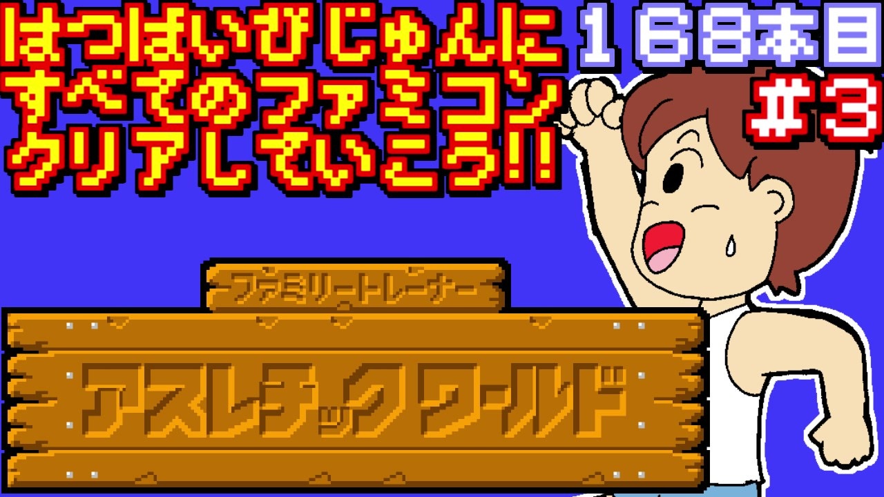 168本目 ファミリートレーナー アスレチックワールド クリア条件: ビギナーで賞状をもらう&エキスパート2周(昼&夜、面構成変化)<br> <br><span style="color: #ff0000; font-size: medium;">発売日順に全てのファミコンソフトをクリアしていこう、という企画です。</span><br><br>1986年11月12日<br>バンダイ<br>スポーツ<br>ファミリートレーナー アスレチックワールド<br><span style="color: #ffffff;">検索用:ファミリーコンピュータ NES 実況プレイ動画 レトロゲーム </span><br>■前回→<a href="https://www.nicovideo.jp/watch/sm34575184" class="watch">sm34575184</a><br>■次回→<a href="https://www.nicovideo.jp/watch/sm34605104" class="watch">sm34605104</a><br><br>■サムネのイラストはひでごんすさん→<a href="https://www.nicovideo.jp/user/3237582" target="_blank" rel="noopener">user/3237582</a><br /><br>◇◆じゅんくりマイリスト関連◆◇<br>■全じゅんくりマイリスト1→<a href="https://www.nicovideo.jp/mylist/67057947" target="_blank" rel="noopener">mylist/67057947</a><br>■全じゅんくりマイリスト2→<a href="https://www.nicovideo.jp/mylist/67057957" target="_blank" rel="noopener">mylist/67057957</a><br>■全じゅんくりマイリスト3→<a href="https://www.nicovideo.jp/mylist/72945068" target="_blank" rel="noopener">mylist/72945068</a><br>■じゅんくりpart1集→<a href="https://www.nicovideo.jp/mylist/67169410" target="_blank" rel="noopener">mylist/67169410</a><br>■1983年→<a href="https://www.nicovideo.jp/mylist/50525072" target="_blank" rel="noopener">mylist/50525072</a><br>■1984年→<a href="https://www.nicovideo.jp/mylist/50525168" target="_blank" rel="noopener">mylist/50525168</a><br>■1985年→<a href="https://www.nicovideo.jp/mylist/50525247" target="_blank" rel="noopener">mylist/50525247</a><br>■1986年→<a href="https://www.nicovideo.jp/mylist/50525642" target="_blank" rel="noopener">mylist/50525642</a><br>■1987年→<a href="https://www.nicovideo.jp/mylist/72895831" target="_blank" rel="noopener">mylist/72895831</a><br>■ディスクシステム→<a href="https://www.nicovideo.jp/mylist/50525822" target="_blank" rel="noopener">mylist/50525822</a><br>■番外編マイリスト→<a href="https://www.nicovideo.jp/mylist/67689092" target="_blank" rel="noopener">mylist/67689092</a><br><br>◇その他にーや。関連◇<br>■にーや。が語るだけ→<a href="https://www.nicovideo.jp/mylist/67575298" target="_blank" rel="noopener">mylist/67575298</a><br>■ファミコンカタログ→<a href="https://www.nicovideo.jp/mylist/67359834" target="_blank" rel="noopener">mylist/67359834</a><br>■YouTubeチャンネル→<a href="https://www.youtube.com/user/218niya0707" target="_blank" rel="noopener nofollow">https://www.youtube.com/user/218niya0707</a><br>■Twitter→<a href="https://twitter.com/famicom_ni_ya" target="_blank" rel="noopener nofollow">https://twitter.com/famicom_ni_ya</a><br>■企画詳細→ <a href="http://niya28.web.fc2.com/fc/gamelist.html" target="_blank" rel="noopener nofollow">http://niya28.web.fc2.com/fc/gamelist.html</a>