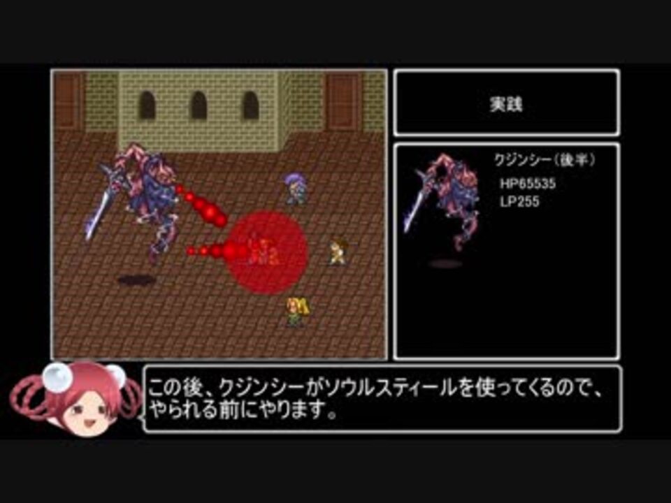 本来負けイベントであるレオンvsクジンシー戦。<br>ソウルスティールを使って逆にクジンシーのLPを吸い取るとどうなるのか…等、最初のクジンシー戦でいろいろ試してみました。<br><br>【ロマサガ2】実機サブフレームリセットでソウルスティールを覚えてみた→<a href="https://www.nicovideo.jp/watch/sm34516488" class="watch">sm34516488</a><br>【ロマサガ2】もっと楽してソウルスティール習得→<a href="https://www.nicovideo.jp/watch/sm34564028" class="watch">sm34564028</a><br><br><span style="color: #000000; font-size: 14px;">他の挑戦シリーズとか→</span><span style="color: #006699; font-size: 14px;"><a href="https://www.nicovideo.jp/mylist/3220744" target="_blank" rel="noopener">mylist/3220744</a></span><span style="color: #000000; font-size: 14px;"> <br>YouTube版→</span><span style="color: #006699; font-size: 14px;"><a href="https://goo.gl/oey5Y7" target="_blank" rel="noopener nofollow">https://goo.gl/oey5Y7</a></span>