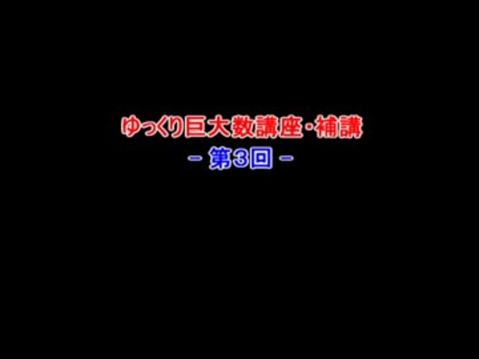 <strong>11月100日。</strong><br><span style="color: red; font-size: 18px;">・・・投稿遅れて本当にすみませんでした!!!!</span><br>今回は、本編Part(3)で解説した<span style="color: blue;">チェーン表記</span>の拡張表記の解説です。<br>初めて補講が本編最新よりも先を行く事になりますが、まあ、ゆるい気分で見てって下さい。(お前はもう少し気を引き締めろ)<br><br>前(補講)→ <a href="https://www.nicovideo.jp/watch/sm33082646" class="watch">sm33082646</a> 次(補講)→ <a href="https://www.nicovideo.jp/watch/sm37718121" class="watch">sm37718121</a><br>本編第三回[前編]→ <a href="https://www.nicovideo.jp/watch/sm31897920" class="watch">sm31897920</a><br>巨大数講座一覧→ <a href="https://www.nicovideo.jp/mylist/59089039" target="_blank" rel="noopener">mylist/59089039</a><br>BGM:甘茶の音楽工房
