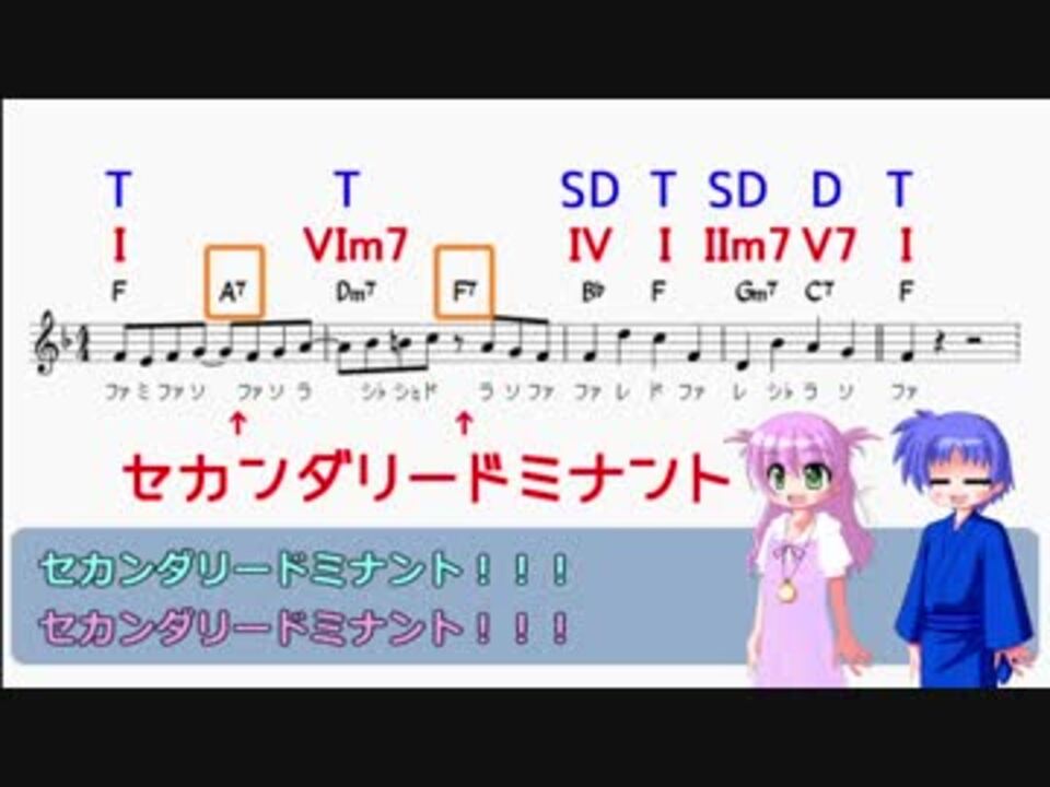 <strong>けもフレOP解説・第四章</strong><br><br><span style="color: red; font-size: 13px;"><strong>◆コミュニティ「いきいき音楽科」を作りました→</strong></span>co3963195(フォローしてね!)<br><br><u>実践分析編②</u>~サビ前半その2~です。<br>★今回扱う部分:冒頭4小節/サビ前半<br>★今回扱う内容:セカンダリードミナントほか<br><br>前→実践分析編①:<a href="https://www.nicovideo.jp/watch/sm34571441" class="watch">sm34571441</a><br>次→中間試験:<a href="https://www.nicovideo.jp/watch/sm34601023" class="watch">sm34601023</a><br><br>素敵な本家様→<a href="https://www.nicovideo.jp/watch/1486524967" class="watch">watch/1486524967</a> 作詞・作曲:大石昌良 さん<br><br>音楽解説シリーズ→<a href="https://www.nicovideo.jp/mylist/62900076" target="_blank" rel="noopener">mylist/62900076</a><br>哲学解説シリーズ→<a href="https://www.nicovideo.jp/mylist/62686094" target="_blank" rel="noopener">mylist/62686094</a> <br>その他→<a href="https://www.nicovideo.jp/mylist/62906527" target="_blank" rel="noopener">mylist/62906527</a><br><br><span style="color: red; font-size: 13px;"><strong>[訂正]ダイアトニックコードの譜例でEm7b5の♭の位置が間違っていました。シ♭、レ♮です! 失礼いたしました!<br><br>[訂正2]サビの2個目A7/Eじゃなくて完全にEm7b5→A7でした。第五章にて訂正しています。</strong></span><br><br>★YouTubeチャンネル登録お願いします!<br><a href="https://www.youtube.com/channel/UCZcAuDzzPn8Z5p-Ou9VB4Rw/" target="_blank" rel="noopener nofollow">https://www.youtube.com/channel/UCZcAuDzzPn8Z5p-Ou9VB4Rw/</a><br><br>★Twitterフォローお待ちしております!<br><a href="https://twitter.com/iki2academy" target="_blank" rel="noopener nofollow">https://twitter.com/iki2academy</a><br><br>【前作の広告ありがとうございました!】<br>ウリムスカ様、ロクシキ様、もっけ様、corgi様、???様、たなかやすおみ様、けもフレ様