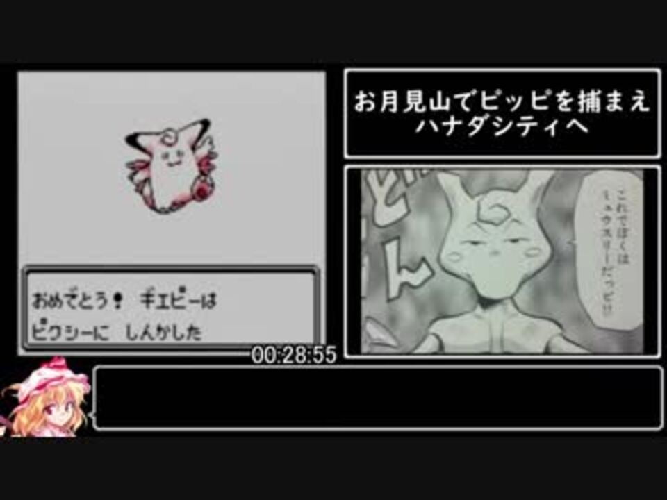 このアカウントでは初投稿です<br>今回はゲームスタート ~ マサキの家まで<br><br>録画環境:ゲームボーイプレーヤーとGV-USB2<br><br>次<a href="https://www.nicovideo.jp/watch/sm34745506" class="watch">sm34745506</a><br>今作一覧<a href="https://www.nicovideo.jp/mylist/64533916" target="_blank" rel="noopener">mylist/64533916</a> <span style="font-size: 13px;">自作一覧</span><a href="https://www.nicovideo.jp/mylist/64541906" target="_blank" rel="noopener">mylist/64541906</a> 自作一覧(旧)<a href="https://www.nicovideo.jp/mylist/59452496" target="_blank" rel="noopener">mylist/59452496</a><br>YouTube版 <a href="https://www.youtube.com/watch?v=P5GhFxV4pVA" target="_blank" rel="noopener nofollow">https://www.youtube.com/watch?v=P5GhFxV4pVA</a><br><br>Q.3番道路で虫取りの少年と戦ってミニスカートスルーだと遅い?<br>A.手持ちはミニスカートが2匹に対し、虫取りの少年は4匹いるので遅くなるかと<br>Q.(お月見山の理科系の男戦で)最初から交代すれば<br>A.そうだよ(反省)<br>Q.なんで画面赤いの?<br>A.ゲームボーイプレーヤーには白黒GBソフトの画面の色を変えられる機能があります。赤版なので赤色にしてみました<br>Q.(マサキの家の前のミニスカ戦で)倒してもらうならゼニガメの方が<br>A.ナゾノクサに相性が悪いので<br>Q.金玉橋前にポケセン寄らずに山男倒してPP回復薬取るのは<br>A.アリですね。経験値の調整は必要かもしれませんが<br>Q.(お月見山でドガースに)ここ水のがよくない?<br>A.メガパン1・水鉄砲2なら安全に倒せたかもしれませんね(未検証)<br><br><span style="font-size: 13px;">多すぎて書ききれないほど沢山の宣伝ありがとうございます!</span>