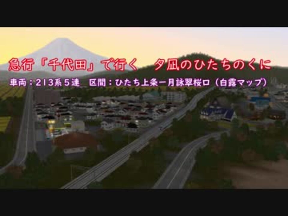 <span style="font-size: 24px;">ひたちのくに鉄道紹介動画3</span>です!<br>ひたちのくに本線を走る急行「千代田」を追います。<br>夕暮れの海を望む本線の景色を是非ご鑑賞ください。<br>※駅標「佐天」駅の英字表記が間違っていました。申し訳ございません。<br><br>協力:<br>アオムコ様(AviUtlプロジェクト制作)<br>本家『急行「千里」で行く 夕凪の風渡』:→<a href="https://www.nicovideo.jp/watch/sm34611497" class="watch">sm34611497</a><br><br>永人様(213系テクスチャ)<br>吹田統合車両製作所様(線路テクスチャ)<br><br>【動画リンク】<br>←PV第一弾 「月夜海」村雨線の115系 : <a href="https://www.nicovideo.jp/watch/sm33779845" class="watch">sm33779845</a><br>←第13回:<a href="https://www.nicovideo.jp/watch/sm34359200" class="watch">sm34359200</a><br><br>ひたちのくに鉄道Wiki:<br><a href="https://nicotetsu.wikiwiki.jp/ひたちのくに鉄道" target="_blank" rel="noopener nofollow">https://nicotetsu.wikiwiki.jp/ひたちのくに鉄道</a><br><br>ツイッター:<a href="https://twitter.com/InverterYa" target="_blank" rel="noopener nofollow">https://twitter.com/InverterYa</a><br>動画のUP情報だけでなく、制作の様子やメモ等のつぶやき、他のオススメ動画などを紹介しています。ぜひフォローしてみてください。
