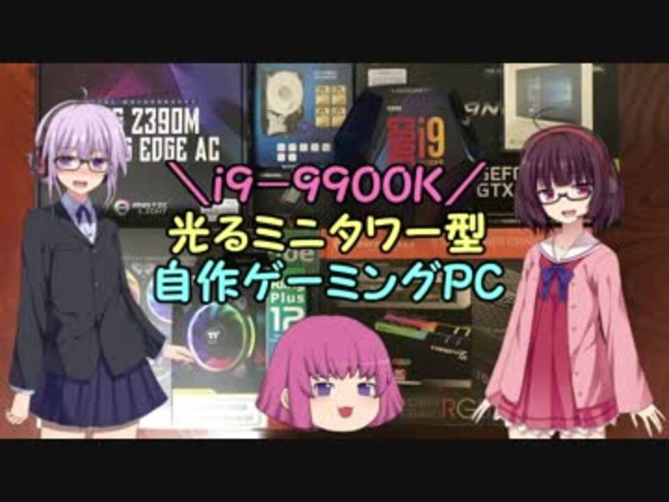 今話題の「i9-9900K」で、自作のゲーミングパソコンに挑戦しました☆<br>気になるお値段は、税込みで283,176円の、動画編集仕様になります!<br><br>主に、ガンダムオンラインがメインですが、ゆっくりしていってね♪<br>ゆっくり&ボイロ実況で、不定期にガンオン動画を投稿中です!<br><br>★ゆっくり&ボイロ実況動画作成に興味のある方へ★<br>「ゆっくり実況講座」:(<a href="https://www.nicovideo.jp/watch/sm30353852" class="watch">sm30353852</a>)→「ゆっくり動画編集&動画投稿」<br>「ボイロ実況講座」:(<a href="https://www.nicovideo.jp/watch/sm32866427" class="watch">sm32866427</a>)→「ボイロ立ち絵の導入~ボイロ実況入門編」<br><br>▼自作ゲーミングパソコンの構成(2018.12)▼<br><br>PCケース:IN WIN 301C Black RGB対応<br><br>ケースファン:Thermaltake Riing Plus 12 RGB Radiator Fan TT Premium Edition -3Pack-<br><br>CPU:Intel Core i9-9900k 3.60GHz~5.00GHz (8コア/16スレッド) キャッシュ16MB<br><br>グリス:AINEX ナノダイヤモンドグリス JP-DX1<br><br>簡易水冷:Thermaltake Floe Riing RGB 240 TT Premium Edition<br><br>マザーボード:MSI MPG Z390M GAMING EDGE AC RGB対応<br><br>グラボ:MSI GTX1070Ti TITANIUM 8G (GPU:NVIDIA GeForce GTX1070Ti)<br><br>メモリ:G.SKILL TRIDENTZ RGB F432C16D32GTZR (DDR4-3200 16GBx2)<br><br>M.2 SSD:SAMSUNG 970 EVO NVMe M.2 500GB (Read:3400MB/s Write:2300MB/s)<br><br>M.2 SSDフィン:SILVER STONE TPO2-M2 M.2 SSD COOLING KIT<br><br>HDD:WD Blue 6TB WD60EZRZ/RT (5400 RPM Class) キャッシュ64MB<br><br>電源ユニット:Thermaltake TOUGHPOWER GRAND RGB 1050W (80PLUS PLATINUM)<br><br>OS:Microsoft Windows 10 Home 2018 Update適用 32bit/64bit パケージ版