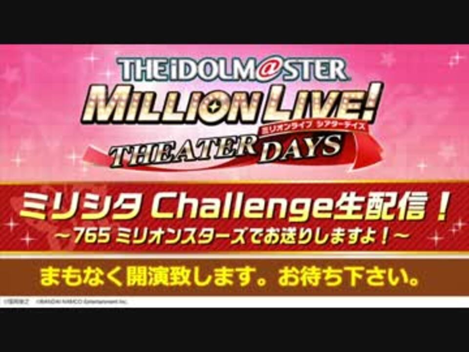 <span style="color: #000000; font-size: 14px;">番組内では、12月よりスタートしたキャスティング投票企画<br>『THE@TER CHALLENGE!!』の結果発表!!<br><br>その他、初公開のゲーム情報や様々な企画など<br>豪華声優陣を迎え盛りだくさんでお届けしますのでお楽しみに!<br><br><br>【番組名】<br>ミリシタ Challenge生配信!<br>~765 ミリオンスターズでお送りしますよ!~</span><br><br><br><strong>出演者</strong><br><span style="color: #000000; font-size: 14px;">小笠原 早紀(野々原 茜役)<br>斉藤 佑圭(永吉 昴役)<br>戸田 めぐみ(舞浜 歩役) <br>中村 温姫(ロコ役)<br>中村 繪里子(天海 春香役)<br>長谷川 明子(星井 美希役)<br>渡部 恵子(周防 桃子役)<br>バンダイナムコエンターテインメント プロデューサー 狭間和歌子</span>