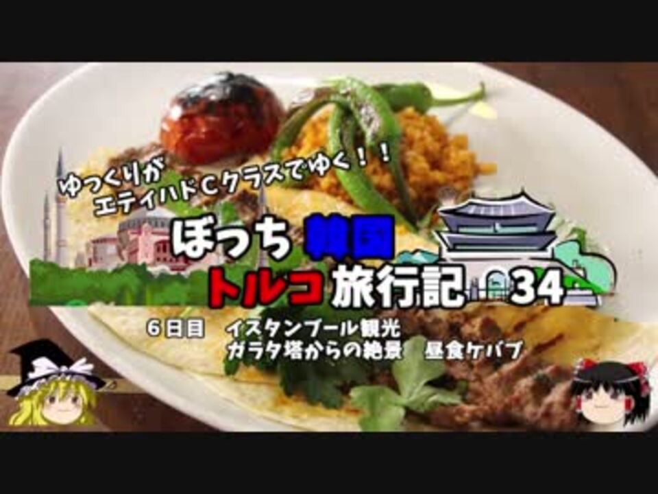 <span style="color: #ff0000; font-size: medium;"><u>※Youtubeで1話分、先行配信中 </u></span><br><span style="color: #0000ff; font-size: medium;"> <a href="http://www.youtube.com/c/なめこのぼっち旅" target="_blank" rel="noopener nofollow">http://www.youtube.com/c/なめこのぼっち旅</a></span> <br><br>引き続き、ガラタ塔からの絶景と、<br>昼食に食べたケバブを紹介します。<br><br>第1話→<a href="https://www.nicovideo.jp/watch/sm34047420" class="watch">sm34047420</a><br><br>第1章・・・韓国観光編<br> 第2章・・・出発編<br> 第3章・・・トルコ観光編<span style="color: #ff0000;">←今ココ</span><br> 第4章・・・帰路編<br><br><span style="color: #ff0000;">コミュニティー→co2910020</span><br> twitter→<a href="https://twitter.com/ryontan" target="_blank" rel="noopener nofollow">https://twitter.com/ryontan</a><br><br><a href="https://www.nicovideo.jp/watch/sm34641641" class="watch">sm34641641</a>←前回 <span style="color: #ff0000;">次回 35話→</span><a href="https://www.nicovideo.jp/watch/sm34664100" class="watch">sm34664100</a><br><br>解説・雑談系→<a href="https://www.nicovideo.jp/mylist/63171869" target="_blank" rel="noopener">mylist/63171869</a><br>今作 韓国トルコ旅行記→<a href="https://www.nicovideo.jp/mylist/63654428" target="_blank" rel="noopener">mylist/63654428</a><br>今作 車中泊旅行記→<a href="https://www.nicovideo.jp/mylist/54706524" target="_blank" rel="noopener">mylist/54706524</a><br>前作 久米島(沖縄)旅行記→<a href="https://www.nicovideo.jp/mylist/63059251" target="_blank" rel="noopener">mylist/63059251</a><br>イギリスタイ旅行記→<a href="https://www.nicovideo.jp/mylist/60044833" target="_blank" rel="noopener">mylist/60044833</a><br>クルーズ旅行記→<a href="https://www.nicovideo.jp/mylist/57397685" target="_blank" rel="noopener">mylist/57397685</a><br>ドイツ周遊記→<a href="https://www.nicovideo.jp/mylist/54938346" target="_blank" rel="noopener">mylist/54938346</a><br>北海道旅行記→<a href="https://www.nicovideo.jp/mylist/52618057" target="_blank" rel="noopener">mylist/52618057</a><br>アメリカ横断記→<a href="https://www.nicovideo.jp/mylist/48621785" target="_blank" rel="noopener">mylist/48621785</a><br>イタリア周遊記→<a href="https://www.nicovideo.jp/mylist/45763559" target="_blank" rel="noopener">mylist/45763559</a><br>NY旅行記→<a href="https://www.nicovideo.jp/mylist/44343854" target="_blank" rel="noopener">mylist/44343854</a><br>