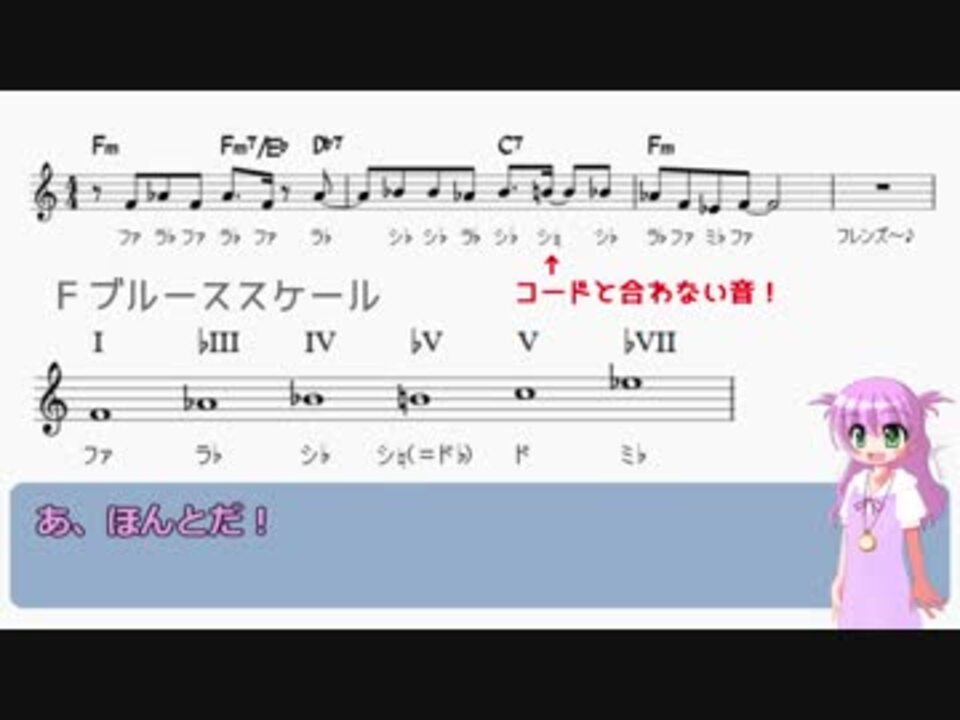 <strong>けもフレOP解説・第六章</strong><br><br><span style="color: red; font-size: 13px;"><strong>◆コミュニティ「いきいき音楽科」を作りました→</strong></span>co3963195(フォローしてね!)<br><br><u>実践分析編④~Aメロ~</u>です。<br>★今回扱う部分:Aメロ<br>★今回扱う内容:マイナーキーのダイアトニックコード、ブルーススケールなど<br><br>前【サビ後半編】→<a href="https://www.nicovideo.jp/watch/sm34627287" class="watch">sm34627287</a><br><span style="color: red; font-size: 13px;"><strong>off vocal聞いてみたところパワーコードじゃなくて3rd鳴ってました。というわけで補足版!</strong></span><br><strong>次【Aメロ補足】→</strong><a href="https://www.nicovideo.jp/watch/sm34666044" class="watch">sm34666044</a><br><br>番外編→<a href="https://www.nicovideo.jp/watch/sm34636117" class="watch">sm34636117</a><br><br>素敵な本家様→<a href="https://www.nicovideo.jp/watch/1486524967" class="watch">watch/1486524967</a> 作詞・作曲:大石昌良 さん<br><br>音楽解説シリーズ→<a href="https://www.nicovideo.jp/mylist/62900076" target="_blank" rel="noopener">mylist/62900076</a><br>哲学解説シリーズ→<a href="https://www.nicovideo.jp/mylist/62686094" target="_blank" rel="noopener">mylist/62686094</a> <br>その他→<a href="https://www.nicovideo.jp/mylist/62906527" target="_blank" rel="noopener">mylist/62906527</a><br><br><span style="color: red;"><strong>[訂正]1:33~Dm7がIVm7になっていますが、VIm7の間違いです。</strong></span><br><br>★YouTubeチャンネル登録お願いします!<br><a href="https://www.youtube.com/channel/UCZcAuDzzPn8Z5p-Ou9VB4Rw/" target="_blank" rel="noopener nofollow">https://www.youtube.com/channel/UCZcAuDzzPn8Z5p-Ou9VB4Rw/</a><br><br>★Twitterフォローお待ちしております!<br><a href="https://twitter.com/iki2academy" target="_blank" rel="noopener nofollow">https://twitter.com/iki2academy</a><br><br>【前作の広告ありがとうございました!】<br>未確認極小物体様、tokai200x様、たなかやすおみ様、SWGain様、ぺろりん様、toto様、もっけ、???様、corgi様