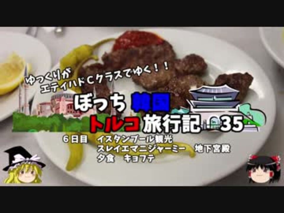 <span style="color: #ff0000; font-size: medium;"><u>※Youtubeで1話分、先行配信中 </u></span><br><span style="color: #0000ff; font-size: medium;"> <a href="http://www.youtube.com/c/なめこのぼっち旅" target="_blank" rel="noopener nofollow">http://www.youtube.com/c/なめこのぼっち旅</a></span> <br><br>今回はベタベタな旧市街を観光していきます。<br>そして夕食はトルコ版ハンバーグ!<br><br>第1話→<a href="https://www.nicovideo.jp/watch/sm34047420" class="watch">sm34047420</a><br><br>第1章・・・韓国観光編<br> 第2章・・・出発編<br> 第3章・・・トルコ観光編<span style="color: #ff0000;">←今ココ</span><br> 第4章・・・帰路編<br><br><span style="color: #ff0000;">コミュニティー→co2910020</span><br> twitter→<a href="https://twitter.com/ryontan" target="_blank" rel="noopener nofollow">https://twitter.com/ryontan</a><br><br><a href="https://www.nicovideo.jp/watch/sm34650178" class="watch">sm34650178</a>←前回 <span style="color: #ff0000;">次回 36話→</span><a href="https://www.nicovideo.jp/watch/sm34677651" class="watch">sm34677651</a><br><br>解説・雑談系→<a href="https://www.nicovideo.jp/mylist/63171869" target="_blank" rel="noopener">mylist/63171869</a><br>今作 韓国トルコ旅行記→<a href="https://www.nicovideo.jp/mylist/63654428" target="_blank" rel="noopener">mylist/63654428</a><br>今作 車中泊旅行記→<a href="https://www.nicovideo.jp/mylist/54706524" target="_blank" rel="noopener">mylist/54706524</a><br>前作 久米島(沖縄)旅行記→<a href="https://www.nicovideo.jp/mylist/63059251" target="_blank" rel="noopener">mylist/63059251</a><br>イギリスタイ旅行記→<a href="https://www.nicovideo.jp/mylist/60044833" target="_blank" rel="noopener">mylist/60044833</a><br>クルーズ旅行記→<a href="https://www.nicovideo.jp/mylist/57397685" target="_blank" rel="noopener">mylist/57397685</a><br>ドイツ周遊記→<a href="https://www.nicovideo.jp/mylist/54938346" target="_blank" rel="noopener">mylist/54938346</a><br>北海道旅行記→<a href="https://www.nicovideo.jp/mylist/52618057" target="_blank" rel="noopener">mylist/52618057</a><br>アメリカ横断記→<a href="https://www.nicovideo.jp/mylist/48621785" target="_blank" rel="noopener">mylist/48621785</a><br>イタリア周遊記→<a href="https://www.nicovideo.jp/mylist/45763559" target="_blank" rel="noopener">mylist/45763559</a><br>NY旅行記→<a href="https://www.nicovideo.jp/mylist/44343854" target="_blank" rel="noopener">mylist/44343854</a><br>