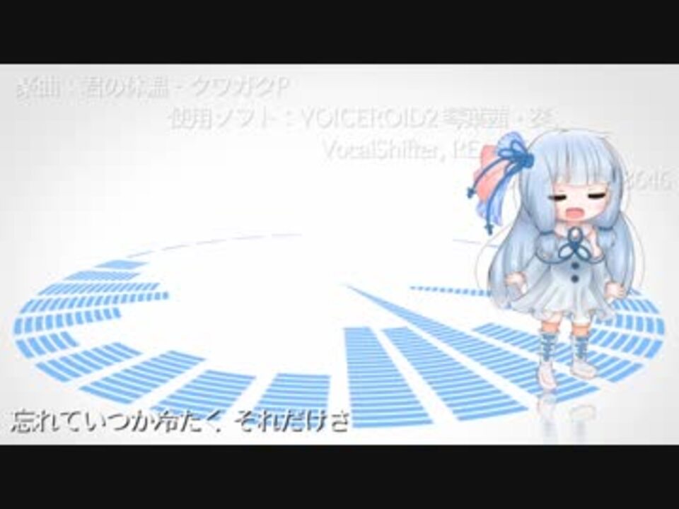 <span style="color: #f0f0f0;">ボカロ⇒ボイロカバーは</span>初投稿です。<br>軽やかでさわやかだけどちょっぴり切ない、あの曲を葵ちゃんにソロで歌ってもらいました!<br>こういう曲は葵ちゃんによく似合うと思う、けど琴葉姉妹にはいつまでもふたりで一緒にいて欲しい! <span style="font-size: 10px;">あと脱法ピヨ式のパワーワード感すき</span><br>例によって1番だけのひとくちサイズですが、よければ聴いていってあげてください。<br>オフボーカル音源は <a href="https://www.youtube.com/watch?v=hiK7UcT-RPU" target="_blank" rel="noopener nofollow">https://www.youtube.com/watch?v=hiK7UcT-RPU</a> をお借りしました。<br><br>楽曲:君の体温 - クワガタP<br>使用ソフト:VOICEROID2 琴葉茜・葵, VocalShifter, REAPER, Aviutl<br><span style="font-size: 13px;">立ち絵:<a href="https://seiga.nicovideo.jp/seiga/im8688646" target="_blank" rel="noopener">im8688646</a></span><br>雑多なついったー:<a href="https://twitter.com/miya_nif" target="_blank" rel="noopener nofollow">https://twitter.com/miya_nif</a>