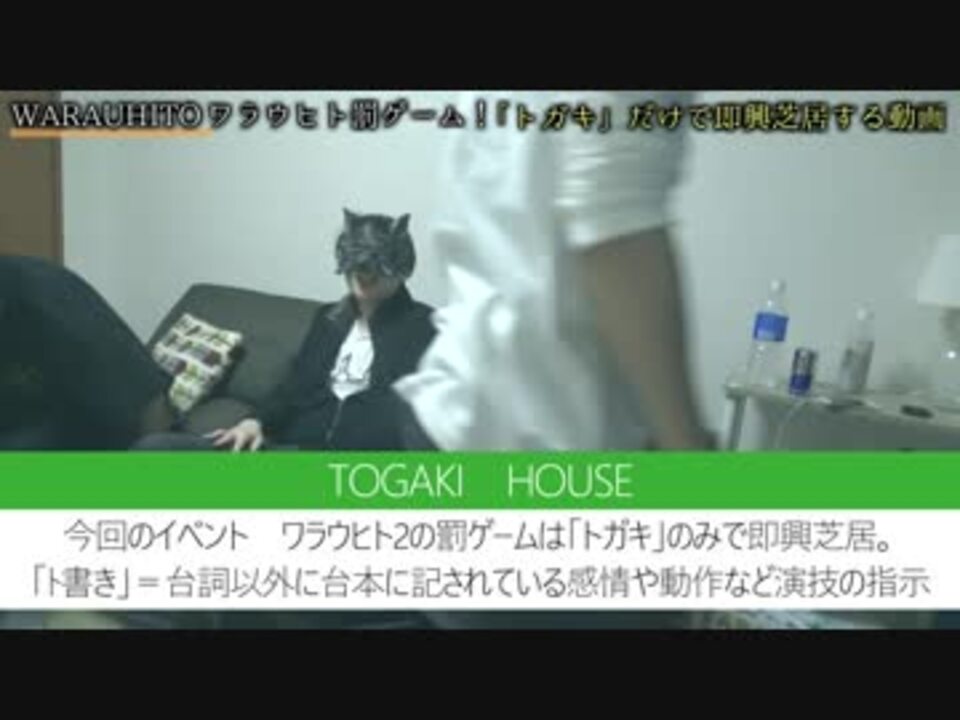 <br>こちらの動画は2018.12/1に行われた<br>実況者トークイベント「ワラウヒト2」での<span style="color: #ff0000; font-size: 18px;"><strong>罰ゲーム</strong></span>動画になります。<br>※素人が撮ったものになりますので音声画質等ご了承ください。<br><br>編集:鳴海<br><br>出演者:<br>58(ごっぱー)<span style="color: rgba(101, 119, 134, 1); font-size: 15px;">@58_gopper</span><br>New-2<span style="color: rgba(101, 119, 134, 1); font-size: 15px;">@yukachikawaii</span><br>藤吉(とうきち)<span style="color: rgba(101, 119, 134, 1); font-size: 15px;">@toukitiq</span><br>ケニー<span style="color: rgba(101, 119, 134, 1); font-size: 15px;">@lKennyl</span><br>栗御飯<span style="color: rgba(101, 119, 134, 1); font-size: 15px;">@kurigohangar</span><br>らすこー<span style="color: rgba(101, 119, 134, 1); font-size: 15px;">@Raskoh_nico</span><br>PHAB<span style="color: rgba(101, 119, 134, 1); font-size: 15px;">@PHAB_optnic</span><br>スナパイ<span style="color: rgba(101, 119, 134, 1); font-size: 15px;">@snapaaai</span><br><br>次回→<a href="https://www.nicovideo.jp/watch/sm34715888" class="watch">sm34715888</a><br>なぜかシリーズ化した罰ゲームマイリスト(<a href="https://www.nicovideo.jp/mylist/64981242" target="_blank" rel="noopener">mylist/64981242</a>)