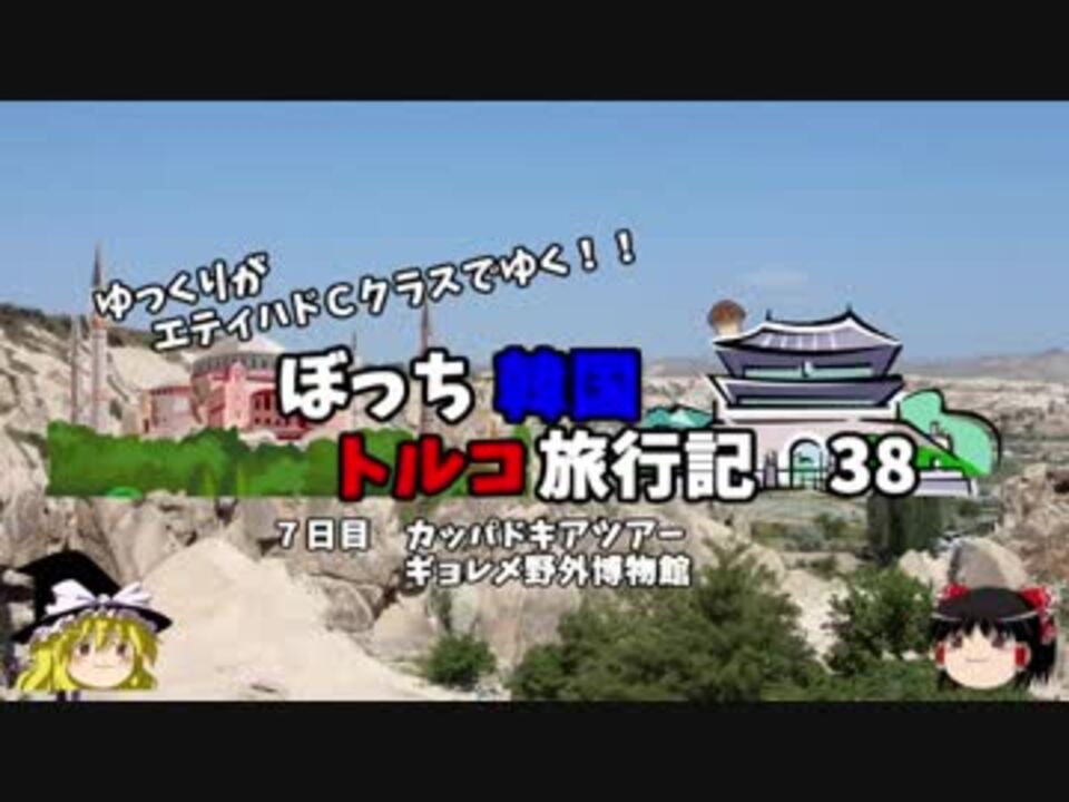 <span style="color: #ff0000; font-size: medium;"><u>※Youtubeで1話分、先行配信中 </u></span><br><span style="color: #0000ff; font-size: medium;"> <a href="http://www.youtube.com/c/なめこのぼっち旅" target="_blank" rel="noopener nofollow">http://www.youtube.com/c/なめこのぼっち旅</a></span> <br><br><br><br>カッパドキアに到着!<br>今回はギョレメ野外博物館に行ってみます!<br>掘りやすいとはいえ、よくもこんなに掘ったなと・・・。<br><br>第1話→<a href="https://www.nicovideo.jp/watch/sm34047420" class="watch">sm34047420</a><br><br>第1章・・・韓国観光編<br> 第2章・・・出発編<br> 第3章・・・トルコ観光編<span style="color: #ff0000;">←今ココ</span><br> 第4章・・・帰路編<br><br><span style="color: #ff0000;">コミュニティー→co2910020</span><br> twitter→<a href="https://twitter.com/ryontan" target="_blank" rel="noopener nofollow">https://twitter.com/ryontan</a><br><br><a href="https://www.nicovideo.jp/watch/sm34685801" class="watch">sm34685801</a>←前回 <span style="color: #ff0000;">次回 39話→</span><a href="https://www.nicovideo.jp/watch/sm34714370" class="watch">sm34714370</a><br><br>解説・雑談系→<a href="https://www.nicovideo.jp/mylist/63171869" target="_blank" rel="noopener">mylist/63171869</a><br>今作 韓国トルコ旅行記→<a href="https://www.nicovideo.jp/mylist/63654428" target="_blank" rel="noopener">mylist/63654428</a><br>今作 車中泊旅行記→<a href="https://www.nicovideo.jp/mylist/54706524" target="_blank" rel="noopener">mylist/54706524</a><br>前作 久米島(沖縄)旅行記→<a href="https://www.nicovideo.jp/mylist/63059251" target="_blank" rel="noopener">mylist/63059251</a><br>イギリスタイ旅行記→<a href="https://www.nicovideo.jp/mylist/60044833" target="_blank" rel="noopener">mylist/60044833</a><br>クルーズ旅行記→<a href="https://www.nicovideo.jp/mylist/57397685" target="_blank" rel="noopener">mylist/57397685</a><br>ドイツ周遊記→<a href="https://www.nicovideo.jp/mylist/54938346" target="_blank" rel="noopener">mylist/54938346</a><br>北海道旅行記→<a href="https://www.nicovideo.jp/mylist/52618057" target="_blank" rel="noopener">mylist/52618057</a><br>アメリカ横断記→<a href="https://www.nicovideo.jp/mylist/48621785" target="_blank" rel="noopener">mylist/48621785</a><br>イタリア周遊記→<a href="https://www.nicovideo.jp/mylist/45763559" target="_blank" rel="noopener">mylist/45763559</a><br>NY旅行記→<a href="https://www.nicovideo.jp/mylist/44343854" target="_blank" rel="noopener">mylist/44343854</a><br>