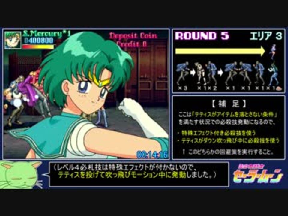 セーラーマーキュリーを使用<br>難易度ノーマル・1コインクリアレギュでのRTA試走プレイです。<br><br>※尺が短いため、解説は最小限に留めています。<br> ゲームの詳しい内容については、前回投稿の「1コインクリア動画」を参照いただけると幸いです。<br><br>・1コインクリア解説 → <a href="https://www.nicovideo.jp/watch/sm34258813" class="watch">sm34258813</a><br>・セーラーマーキュリーでRTA試走プレイ → ここ<br>・セーラーマーズでパンチハメ禁止プレイ → <a href="https://www.nicovideo.jp/watch/sm36783156" class="watch">sm36783156</a><br>・セーラージュピターで必殺技使用&アイテム取得禁止プレイ →<a href="https://www.nicovideo.jp/watch/sm37476415" class="watch">sm37476415</a><br><br>私がお勧めするセラムンが現役で遊べるゲーセンは、埼玉の「VGMロボット深谷店」です。(co3329679)<br>セラムン以外にもレトロゲーが大量に稼動しており、週末は生配信もやってますゾ。<br> 埼玉の県北に行ける人は遊びに行って、どうぞ(ダイマ)<br><br>(2019/4/28追記)<br>遅くなりましたが、たくさんのご視聴・コメント・広告、まことにありがとうございます!<br>次作の編集がクッソ遅れており申し訳ありません。