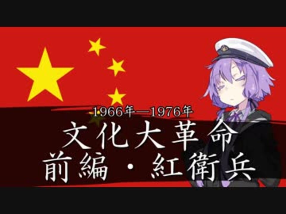3分でわかる現代史シリーズ。<br>第三弾・中華人民共和国「<span style="color: #000000; font-size: 13px;">文化大革命 ー前編・紅衛兵ー</span>」編 1966年ー1976年<br><br><span style="font-size: 13px;">現代史シリーズ:<a href="https://www.nicovideo.jp/mylist/64888263" target="_blank" rel="noopener">mylist/64888263</a></span><br> <br>前:<a href="https://www.nicovideo.jp/watch/sm34713741" class="watch">sm34713741</a> (キューバ) その前:<a href="https://www.nicovideo.jp/watch/sm34702711" class="watch">sm34702711</a>(大躍進政策)<br>次:<a href="https://www.nicovideo.jp/watch/sm34835512" class="watch">sm34835512</a> (文化大革命 後編)<br><br>某方の弟子です。<br>現代史の出来事について、わかりやすく3分で解説するシリーズを作ってます。<br>紅衛兵とか公開の発音がおかしいのは許してください、なんでもしますから!<br><br><span style="font-size: 13px;">ー前編・紅衛兵ー<br> 文化大革命の”加害者”として有名な紅衛兵について解説します。<br> 前編は、文革に至る過程と、この内乱が中国の人々にどんな傷をつけたのかをメインに解説します。</span><br><br>用語解説・補足等:<br><br>造反有理:革命を行うものに道理がある、という意味でよく使われた。東大闘争でも使われた。<br> ほかにも文革で使われた革命無罪のような用語は色々あるがカット。<br>海瑞罷官:著者ごかん は北京市副市長で、上司の北京市長は、劉少奇の派閥の人間である。<br> 作品は明代が舞台で、民を思い?意見した良い高官が皇帝に罷免されるという話。<br>毛沢東語録:①北京のお土産。<br> ②内容をどうとでも解釈できる片言隻語の寄せ集めが書かれている。紅衛兵の聖書。<br>継続革命論:社会主義社会の中でも、資本主義へ回帰しようとするものがいるので、<br> 常に社会主義革命への運動を続けようといった内容。<br> <br>
