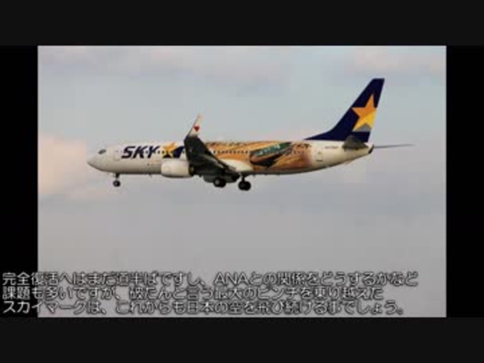 <span style="color: #0a0a0a; font-size: 14px;">今回と次回は現在に至るまでの関東~京阪神間の航空と鉄道の動きをご紹介します。今回は航空サイドのお話。JALの破たん以降、JALもANAも国内線では無理に規模を追う事はせず、搭乗率や採算性を重視して以前のような新幹線サイドとの分かりやすい客の奪い合いをしなくなりました。それでも航空各社にとってこの区間が重要な路線であることに変わりはありません。<br>一方、異業種から転身したカリスマ経営者の手で見事蘇ったかに見えたスカイマーク。しかし、彼自身が手掛けた超大型機の夢がスカイマークを破滅へと追い込んでしまいます。その先に再生の道はあるのでしょうか。<br><br>なお、今回から映像も入れるようにしましたが、「静止画の方が見やすい」と言う方もいらっしゃったのでニコニコ版はYouTube版よりも静止画の比率を多くしてあります。若干代理の人のセリフも追加しましたのでYouTube版との違いも楽しんで頂ければと思います。<br>最終章⑥→</span><a href="https://www.nicovideo.jp/watch/sm34437119" class="watch">sm34437119</a><span style="color: #0a0a0a; font-size: 14px;"> 最終回→</span><a href="https://www.nicovideo.jp/watch/sm35082842" class="watch">sm35082842</a><br /><span style="color: #000000; font-size: 14px;">迷航空会社列伝</span><span style="color: #006699; font-size: 14px;"><a href="https://www.nicovideo.jp/mylist/24098760" target="_blank" rel="noopener">mylist/24098760</a></span><span style="color: #000000; font-size: 14px;"> 迷列車北陸編</span><span style="color: #006699; font-size: 14px;"><a href="https://www.nicovideo.jp/mylist/19084652" target="_blank" rel="noopener">mylist/19084652</a> </span><span style="color: #000000; font-size: 14px;">東海道交通戦争</span><span style="color: #006699; font-size: 14px;"><a href="https://www.nicovideo.jp/mylist/57958388" target="_blank" rel="noopener">mylist/57958388</a></span><span style="color: #000000; font-size: 14px;"> 交通機関の栄枯盛衰 </span><a href="https://www.nicovideo.jp/mylist/66898301" target="_blank" rel="noopener">mylist/66898301</a><br><span style="color: #000000; font-size: 14px;">ブログ→</span><span style="color: #006699; font-size: 14px;"><a href="http://www.meihokuriku-alps.com" target="_blank" rel="noopener nofollow">http://www.meihokuriku-alps.com</a></span><br>note→<a href="https://note.com/meihokuriku" target="_blank" rel="noopener nofollow">https://note.com/meihokuriku</a><br><span style="color: #000000; font-size: 14px;">使用BGM<br>甘茶の音楽工房様 </span><span style="color: #006699; font-size: 14px;"><a href="http://amachamusic.chagasi.com/index.html" target="_blank" rel="noopener nofollow">http://amachamusic.chagasi.com/index.html</a></span><br><span style="color: #000000; font-size: 14px;">魔王魂様 </span><span style="color: #006699; font-size: 14px;"><a href="https://maoudamashii.jokersounds.com/list/bgm5.html" target="_blank" rel="noopener nofollow">https://maoudamashii.jokersounds.com/list/bgm5.html</a></span>