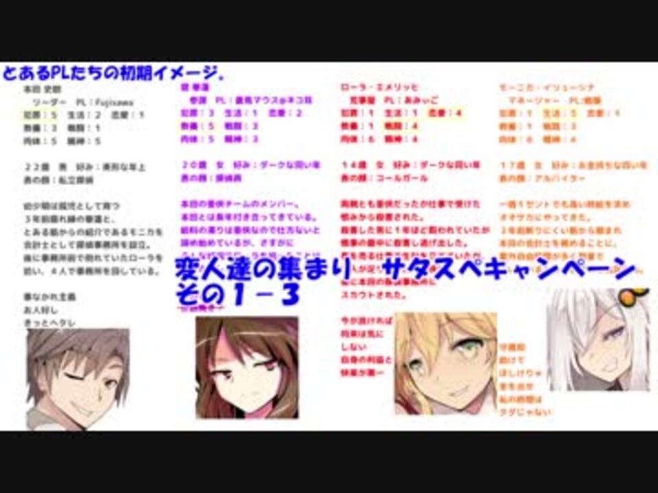 ゆっくり+ボイスロイドによるリプレイとすら言えないリプレイ動画です。<br>やはりTRPG動画は疲れる。すごく。なので失踪前提。<br><br>※注意書きにもありますが、既にファイナルセッションラスト手前まで突入している上に<br>もともと動画化する気が一切なかったので、<br>荷物や血戦の配置などが一切記憶にありません。そこらへんが適当になります。<br><br><a href="https://www.nicovideo.jp/watch/sm34827559" class="watch">sm34827559</a>← その1-2 その1-4 → <a href="https://www.nicovideo.jp/watch/sm34838327" class="watch">sm34838327</a><br>マイリスト →<a href="https://www.nicovideo.jp/mylist/65098271" target="_blank" rel="noopener">mylist/65098271</a><br>その1リスト →<span style="color: #006699; font-size: 14px;"><a href="https://www.nicovideo.jp/mylist/58364125" target="_blank" rel="noopener">mylist/58364125</a></span>