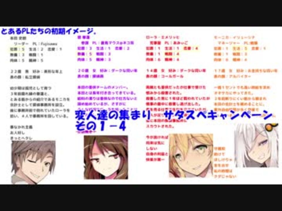 ゆっくり+ボイスロイドによるリプレイとすら言えないリプレイ動画です。<br>やはりTRPG動画は疲れる。すごく。なので失踪前提。<br><br>スピークィージーコピペ用<br>1:親分<br>2:闇商人<br>3:殺し屋<br>4:用心棒<br>5:色事師<br>6:ペテン師<br>7:泥棒<br>8:走り屋<br>9:情報屋<br>10:裏職人<br>11:キジルシ<br>12:ダメ人間<br><br>MVPコピペ用<br>シロウ 本田史朗<br>カレン 碧 華蓮<br>ローラ ローラ・エメリッヒ<br>モニカ モーニカ・イリューシナー<br><br>投票締切ました。<br><br><a href="https://www.nicovideo.jp/watch/sm34833439" class="watch">sm34833439</a>← その1-3 その2-1 → <a href="https://www.nicovideo.jp/watch/sm34850163" class="watch">sm34850163</a><br>マイリスト →<a href="https://www.nicovideo.jp/mylist/65098271" target="_blank" rel="noopener">mylist/65098271</a><br>その1リスト →<span style="color: #006699; font-size: 14px;"><a href="https://www.nicovideo.jp/mylist/58364125" target="_blank" rel="noopener">mylist/58364125</a></span>