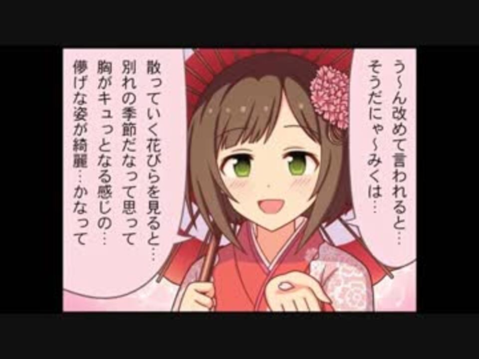 桜は登ろうとすると大抵毛虫に刺された思い出<br><br><span style="color: #000000; font-size: 14px;">1255話~1265話まで<br><br>※うp主は作者ではありません<br>問題があればすぐに削除します<br><br>1話~869話はたけのこさんの動画をご覧ください<br>[</span><span style="color: #006699; font-size: 14px;"><a href="https://www.nicovideo.jp/mylist/41166098" target="_blank" rel="noopener">mylist/41166098</a></span><span style="color: #000000; font-size: 14px;">]</span><br><br><a href="https://www.nicovideo.jp/watch/sm34744681" class="watch">sm34744681</a><span style="color: #000000; font-size: 14px;">←前次→</span><a href="https://www.nicovideo.jp/watch/sm34979427" class="watch">sm34979427</a><br />シン劇〈<a href="https://www.nicovideo.jp/mylist/59577984" target="_blank" rel="noopener">mylist/59577984</a>〉<br>ミリシタ〈<a href="https://www.nicovideo.jp/mylist/69711168" target="_blank" rel="noopener">mylist/69711168</a>〉<br>シャニマス〈<a href="https://www.nicovideo.jp/mylist/69711232" target="_blank" rel="noopener">mylist/69711232</a>〉<br>スタマス〈<a href="https://www.nicovideo.jp/mylist/70198086" target="_blank" rel="noopener">mylist/70198086</a>〉<br>ポプマス〈<a href="https://www.nicovideo.jp/mylist/70367064" target="_blank" rel="noopener">mylist/70367064</a>〉<br>拡大版〈<a href="https://www.nicovideo.jp/mylist/66830910" target="_blank" rel="noopener">mylist/66830910</a>〉<br>わいど☆〈<a href="https://www.nicovideo.jp/mylist/66830912" target="_blank" rel="noopener">mylist/66830912</a>〉<br>みりおん〈<a href="https://www.nicovideo.jp/mylist/66830907" target="_blank" rel="noopener">mylist/66830907</a>〉 <br>MOR〈<a href="https://www.nicovideo.jp/mylist/65640461" target="_blank" rel="noopener">mylist/65640461</a>〉<br>SideM 〈<a href="https://www.nicovideo.jp/mylist/71883992" target="_blank" rel="noopener">mylist/71883992</a>〉<br>学マス〈<a href="https://www.nicovideo.jp/mylist/76625432" target="_blank" rel="noopener">mylist/76625432</a>〉