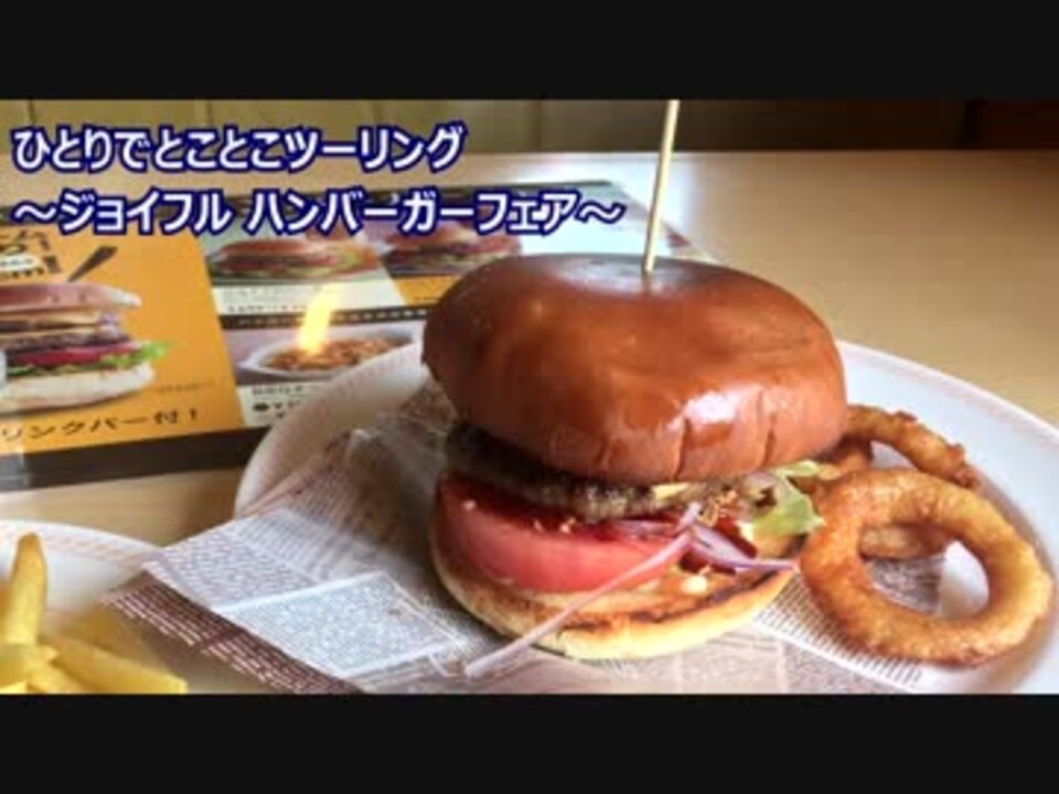 番外編だよ!そして飯テロだよ!<br>九州でファミレスと言ったらジョイフルです。<span style="font-size: 10px;">(サイゼリヤ?知らない子ですね……)</span><br><a href="https://www.joyfull.co.jp/" target="_blank" rel="noopener nofollow">https://www.joyfull.co.jp/</a><br>そんなジョイフルがハンバーガーを出すというのではありませんか。行くしかありません。<br>ハンバーガーとドリンクバーのセットにポテトをつけて860円でした。なかなかのボリュームでした。<br>それにドリンクバーがついているので食後にゆっくりとできましたし、意外と良いかも……。<br>なお、ドリンクバーでダバーしたことと、コーラとコーヒーでお腹がいっぱいになったのは事実です(´・ω・`)<br>■前回 イーブイマンホール <a href="https://www.nicovideo.jp/watch/sm34855591" class="watch">sm34855591</a> ■次回 慈眼寺公園さくら広場 <a href="https://www.nicovideo.jp/watch/sm34946583" class="watch">sm34946583</a><br>■BGM 森の踊り <a href="https://commons.nicovideo.jp/works/nc148115" target="_blank" rel="noopener">nc148115</a><br>■車載動画 <a href="https://www.nicovideo.jp/mylist/8893723" target="_blank" rel="noopener">mylist/8893723</a><br>■ユーザページ <a href="https://www.nicovideo.jp/user/347413" target="_blank" rel="noopener">user/347413</a>