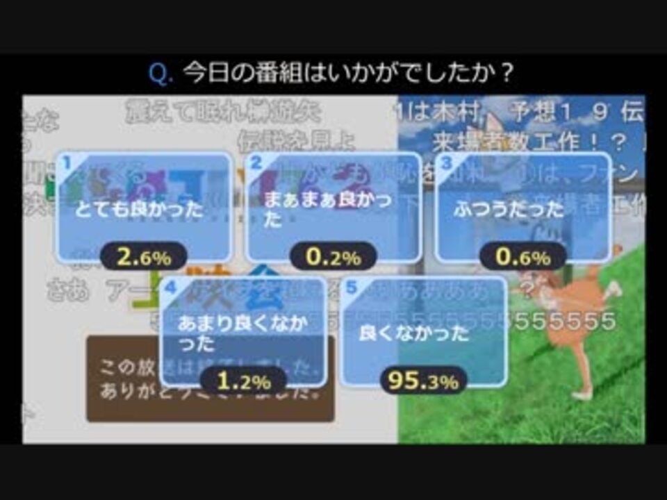 <span style="color: #ff0000; font-size: 24px;">榊遊矢ごときがキュルルに勝てると思うな</span><br><br>最終回で動画投稿が3番目から5番目に落ちるとか恥ずかしくないの?<br><br>文章力も発想力も創造力もなかったため、解説動画とかゴマイヌの動画とか全く作れず、こんな他人に便乗したような動画しか作れませんでした。<br>というか、この投稿者いつも他人のアイディアに便乗した動画ばっか作ってんな。<br>今までこんなクソみたいな動画に付き合って下さり、ありがとうございました。<br>多分これからはけものフレンズというコンテンツに触れる機会が圧倒的に少なくなると思います。<br><br>9話→<a href="https://www.nicovideo.jp/watch/sm34767698" class="watch">sm34767698</a> 10話→<a href="https://www.nicovideo.jp/watch/sm34806186" class="watch">sm34806186</a> 11話→<a href="https://www.nicovideo.jp/watch/sm34856775" class="watch">sm34856775</a> 振り返り放送→<a href="https://www.nicovideo.jp/watch/sm34895293" class="watch">sm34895293</a><br><br>一応過去動画の宣伝<br>こんなアニメと違って面白い好きなアニメ集→<a href="https://www.nicovideo.jp/watch/sm34484895" class="watch">sm34484895</a><br>こんなアニメよりかは面白い好きなアニメ集→<a href="https://www.nicovideo.jp/watch/sm34485095" class="watch">sm34485095</a><br><br>けんぴ兄貴、龍之介兄貴、bakushi444兄貴、やまたし兄貴、ryo兄貴、榊遊矢兄貴、ゾゾオカ兄貴、mick5988兄貴、yuu兄貴、ヒロシゲっぽ兄貴、看板泥棒P兄貴、ドリルアングラー兄貴、tmr兄貴、しょーん兄貴、広告ありがとナス!