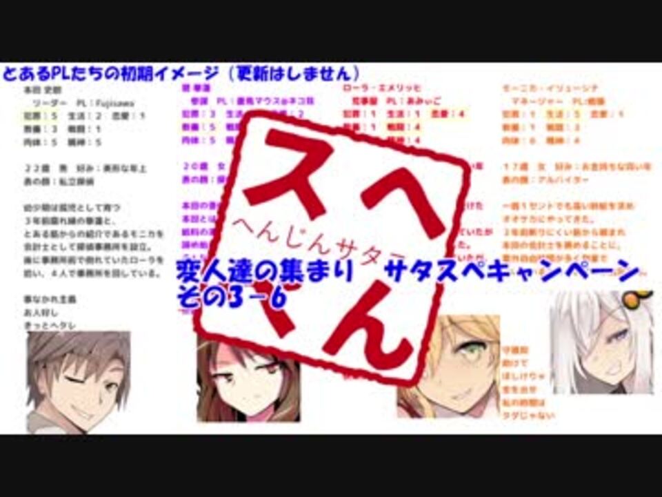 ゆっくり+ボイスロイドによるリプレイとすら言えないリプレイ動画です。<br>目?治ってないよ( ˘ω˘)。<br><br>※注意書きにもありますが、既にファイナルセッションラスト手前まで突入している上に<br>もともと動画化する気が一切なかったので、<br>荷物や血戦の配置などが一切記憶にありません。そこらへんが適当になります。<br><br>あと許可は頂きました。本当にありがとうございます(土下座<br><br>致命的なミスを発見したため再アップ。<br><br><a href="https://www.nicovideo.jp/watch/sm34916507" class="watch">sm34916507</a>← その3-5 その3-7 →<a href="https://www.nicovideo.jp/watch/sm34924837" class="watch">sm34924837</a><br>マイリスト →<a href="https://www.nicovideo.jp/mylist/65098271" target="_blank" rel="noopener">mylist/65098271</a><br>その1リスト →<span style="color: #006699; font-size: 14px;"><a href="https://www.nicovideo.jp/mylist/58364125" target="_blank" rel="noopener">mylist/58364125</a></span>