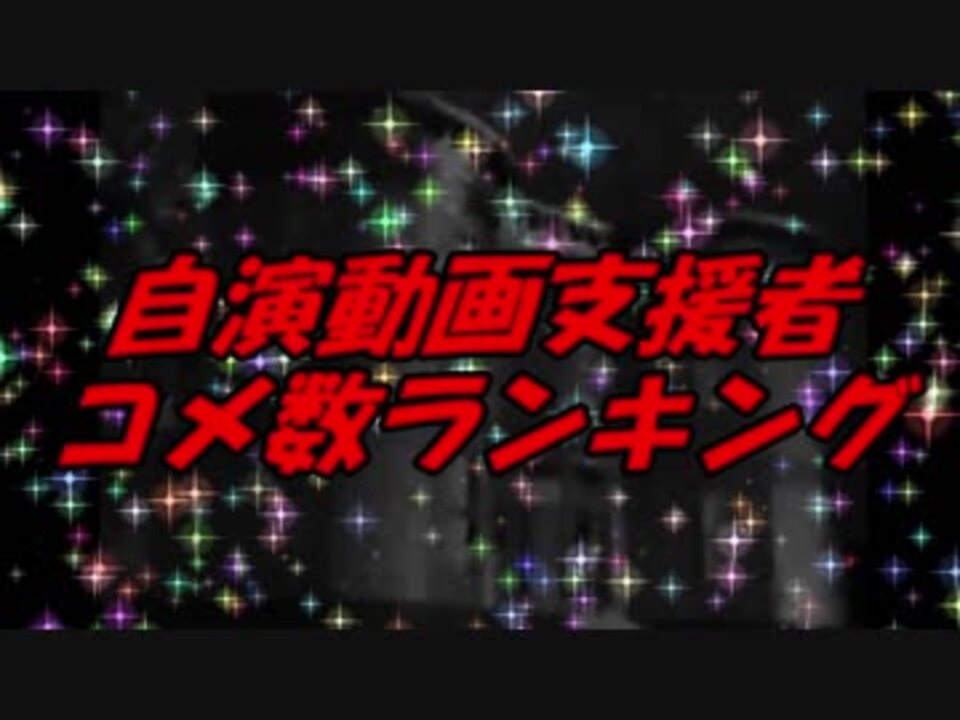 自分でうpした動画に自分でコメントしまくってみる(<a href="https://www.nicovideo.jp/watch/sm125732" class="watch">sm125732</a>)の12周年記念に、支援者が今まで打ったコメ数をランキング形式にしてみました。<br>2019年3月28日9時までに投稿された全てのコメント(約4725万コメント)を取得し、そこから集計を行いました。調査自体は2018年の6月から始めていました。あくまで推計なので目安程度に受け取ってください。<br><br>令和になってもみんなでコメントしていけますように。<br><br>月間支援者コメ数推移データ↓<br><a href="https://www.axfc.net/u/3971659" target="_blank" rel="noopener nofollow">https://www.axfc.net/u/3971659</a><br><br>集計期間:2007/4/8 16:53 ~2019/3/28 8:59<br>集計対象:自演動画に10万コメ以上打った支援者<br><span style="color: #ff0000;">※特定の支援者への中傷コメは控えてください。</span><br>