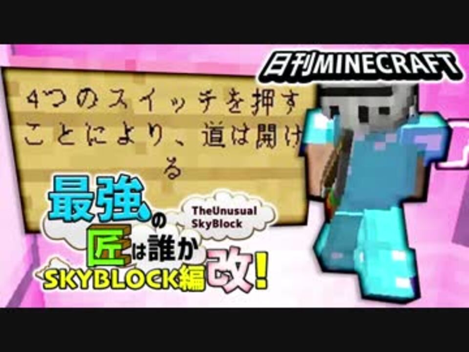 全世界のみんな、スカイブロックってか日刊マインクラフト!!<br>ついにトカルト城への道を開いたSP一行!<br>しかしトカルトはまだまだ広い!?がんばれMSP!負けるなP!<br><br>★FB777→黒服。マイクラ歴7年。好きなマイクラ的発想はしゃがんでれば落ちない。<br>★あろま→マスターチーフ。マイクラ歴7年。好きなマイクラ的発想はジャンプ攻撃は強い。<br>★EOHEOH→素スティーブ。マイクラ歴7年。好きなマイクラ的発想はスキップ移動は早い。<br>★KIKKUN-MK-Ⅱ→ヨッシー。マイクラ歴7年。好きなマイクラ的八艘飛び忍者汚い。<br><br>高画質&詳細文はこちら→<a href="https://youtu.be/J3l8UQukMlo" target="_blank" rel="noopener nofollow">https://youtu.be/J3l8UQukMlo</a><br>TheUnusualSkyBlock→<a href="https://skyblock.jp/" target="_blank" rel="noopener nofollow">https://skyblock.jp/</a><br><br>前回→<a href="https://www.nicovideo.jp/watch/sm34944213" class="watch">sm34944213</a> 次回→<a href="https://www.nicovideo.jp/watch/sm34950657" class="watch">sm34950657</a><br>マイクラマイリス→<a href="https://www.nicovideo.jp/mylist/34003718" target="_blank" rel="noopener">mylist/34003718</a><br><br />▼Limited Abyss History 2026年MSSP音楽ライブ情報も!<br>16周年グッズや16周年のMSSPの最新情報一覧はこちらから!<br>MSSPオフィシャルサイト<br><a href="https://mssp-web.com/" target="_blank" rel="noopener nofollow">https://mssp-web.com/</a><br><br>▼MSSP最新ミニアルバム『サンダーボルト』リリース中!!<br>MV <a href="https://youtu.be/6fNvrd0qMfg" target="_blank" rel="noopener nofollow">https://youtu.be/6fNvrd0qMfg</a><br><a href="https://mssp-web.com/discography/kp7f4ff2ntm/" target="_blank" rel="noopener nofollow">https://mssp-web.com/discography/kp7f4ff2ntm/</a><br><br>▼15年分のMSSP音源&新曲が詰まった超ウルトラベスト盤<br>『M.S.S.Platinum BEST』発売中!オンライン販売はこちら↓<br><a href="https://ipshoten-online.com/products/ipst-0031" target="_blank" rel="noopener nofollow">https://ipshoten-online.com/products/ipst-0031</a><br><br>▼↓↓↓M.S.S Projectの動画の切り抜き動画公開に関しての<br>ガイドラインは此方のブロマガをご覧ください!↓↓↓<br><a href="https://ch.nicovideo.jp/mssp/blomaga/ar2087761" target="_blank" rel="noopener nofollow">https://ch.nicovideo.jp/mssp/blomaga/ar2087761</a><br><br>▼MSSPオフィシャルサイト<br><a href="https://mssp-web.com/" target="_blank" rel="noopener nofollow">https://mssp-web.com/</a><br>▼MSSPライブサイト<br><a href="https://live.mssp-web.com/2025w/" target="_blank" rel="noopener nofollow">https://live.mssp-web.com/2025w/</a><br>▼MSSPグッズショップサイト<br><a href="https://official-goods-store.jp/mssproject/" target="_blank" rel="noopener nofollow">https://official-goods-store.jp/mssproject/</a><br>▼Youtube M.S.S Project ライブ(実写、生放送)<br><a href="https://www.youtube.com/c/NewMSSP" target="_blank" rel="noopener nofollow">https://www.youtube.com/c/NewMSSP</a><br>▼Youtube M.S.S Project ゲーム<br><a href="https://www.youtube.com/@MSSP" target="_blank" rel="noopener nofollow">https://www.youtube.com/@MSSP</a><br>▼ニコニコ動画 M.S.S Projectチャンネル<br><a href="http://ch.nicovideo.jp/mssp/blomaga" target="_blank" rel="noopener nofollow">http://ch.nicovideo.jp/mssp/blomaga</a><br>▼ニコニコM.S.S Project実況動画 <br><a href="http://www.nicovideo.jp/mylist/14610850" target="_blank" rel="noopener nofollow">http://www.nicovideo.jp/mylist/14610850</a>