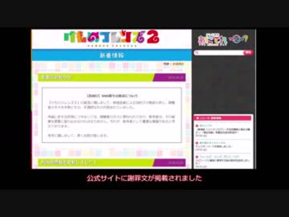 続き>><a href="https://www.nicovideo.jp/watch/sm43736819" class="watch">sm43736819</a><br>今回の予習動画<br><a href="https://www.nicovideo.jp/watch/sm34965186" class="watch">sm34965186</a><br><br>参考ブログ<br><a href="https://web.archive.org/web/20190408154059/http://www.hosoya.tv/2013/02/nhkpr.html" target="_blank" rel="noopener nofollow">https://web.archive.org/web/20190408154059/http://www.hosoya.tv/2013/02/nhkpr.html</a><br><br>この件に関しての問い合わせされたい方が見るべき動画<br><a href="https://www.nicovideo.jp/watch/sm34975493" class="watch">sm34975493</a><br><br>4/1 最終回放送<br>4/2 生放送アンケートで榊遊矢に大勝利を収める <br>4/3 細谷伸之と氷村ふぁねるが同時停止 <br>4/4 ケムリクサ12.1話が公開から3時間で100万再生 <br>4/5 屋形船の欠航が判明 <br>4/6 榊正宗氏が氷村ふぁねるの開示請求を検討開始 <br>4/7 たつき「おふとん気持ち良い」 <br>4/8 木村隆一がおふとんに敗北 <br>4/9 沼田心之介が独りで慌てる <br>4/10 都市伝説がコーヒーに敗北 <br>4/11 AGNのけもフレちゃんねる管理人呼び出しが発覚 <br>4/12 けもフレちゃんねるが不正アクセスを受ける <br>4/13 あかり先生がブログ更新<br>4/14 沼田心之介youtuberになる<br>4/15 テレ東お詫び(になってない)ニュースがyahooトップ<br>4/16 振り返り上映会から細谷P逃亡(助監督シールド)<br><br>前>><br><br>この動画は基本的にコメントが流れることを前提に作られています<br>もし他サイトに転載したいという方がいたら出典元明記の上ご自由にどうぞ