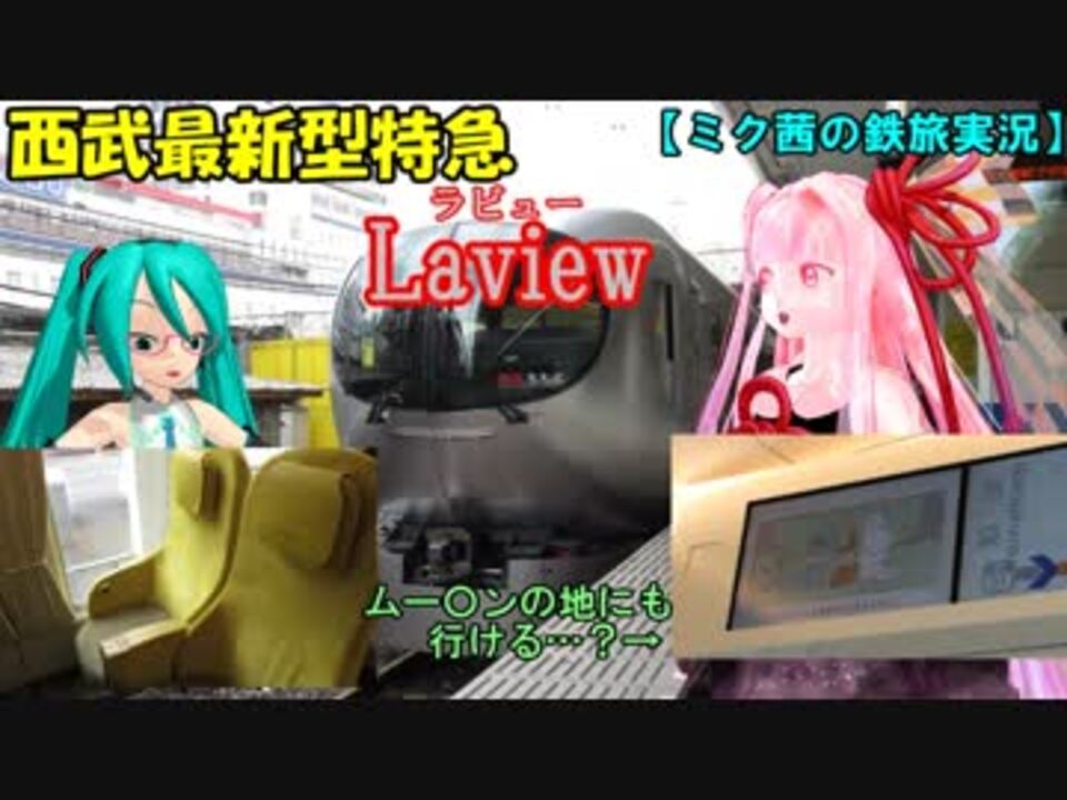 こんにちは、コロりっく(ちっちゃいP)です<br><br>西武最新型特急Laview(ラビュー)に乗ってきました<br>実に26年ぶりの西武線の新型特急です<br><br><br>同行者:初音ミク(コロみっく) 琴葉茜(コロ葉茜)<br><br><br><br>撮影日(2019.4.17)<br>YouTube版→<span style="color: #167ac6; font-size: 11px;"><a href="https://youtu.be/QE8yAghBxd0" target="_blank" rel="noopener nofollow">https://youtu.be/QE8yAghBxd0</a></span><br>鉄旅実況シリーズ→<a href="https://www.nicovideo.jp/mylist/60783999" target="_blank" rel="noopener">mylist/60783999</a> <br>トークロイドシリーズ→<a href="https://www.nicovideo.jp/mylist/32070848" target="_blank" rel="noopener">mylist/32070848</a><br><br>(ここの動画で出てきた動画たち→<a href="https://www.nicovideo.jp/watch/sm34888411" class="watch">sm34888411</a> <a href="https://www.nicovideo.jp/watch/sm34747131" class="watch">sm34747131</a> <a href="https://www.nicovideo.jp/watch/sm34188521" class="watch">sm34188521</a> <a href="https://www.nicovideo.jp/watch/sm34889213" class="watch">sm34889213</a>)
